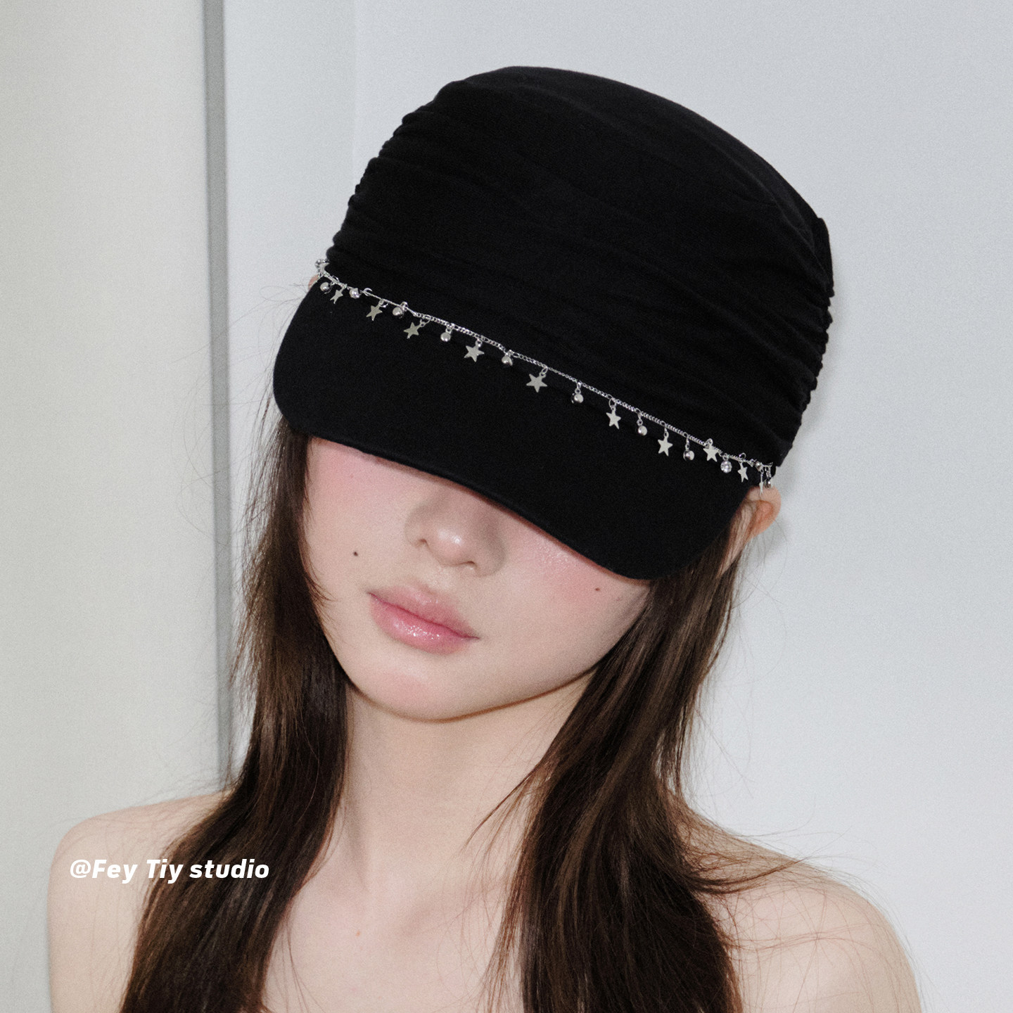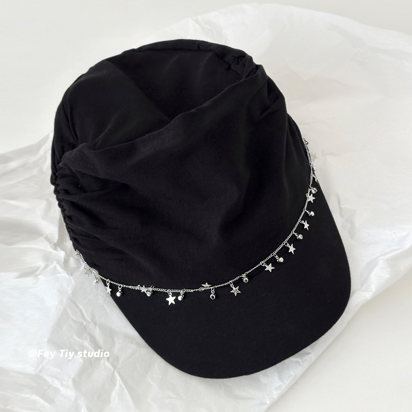 时髦褶皱设计百搭帽子韩版 饰骑士帽女小众个性 链条星星装 feytiy
