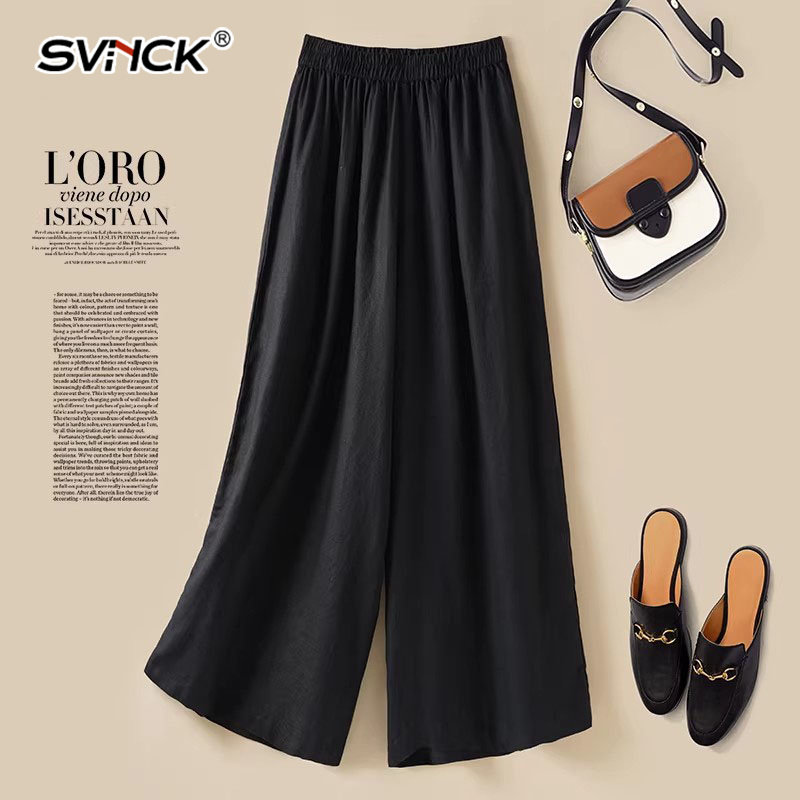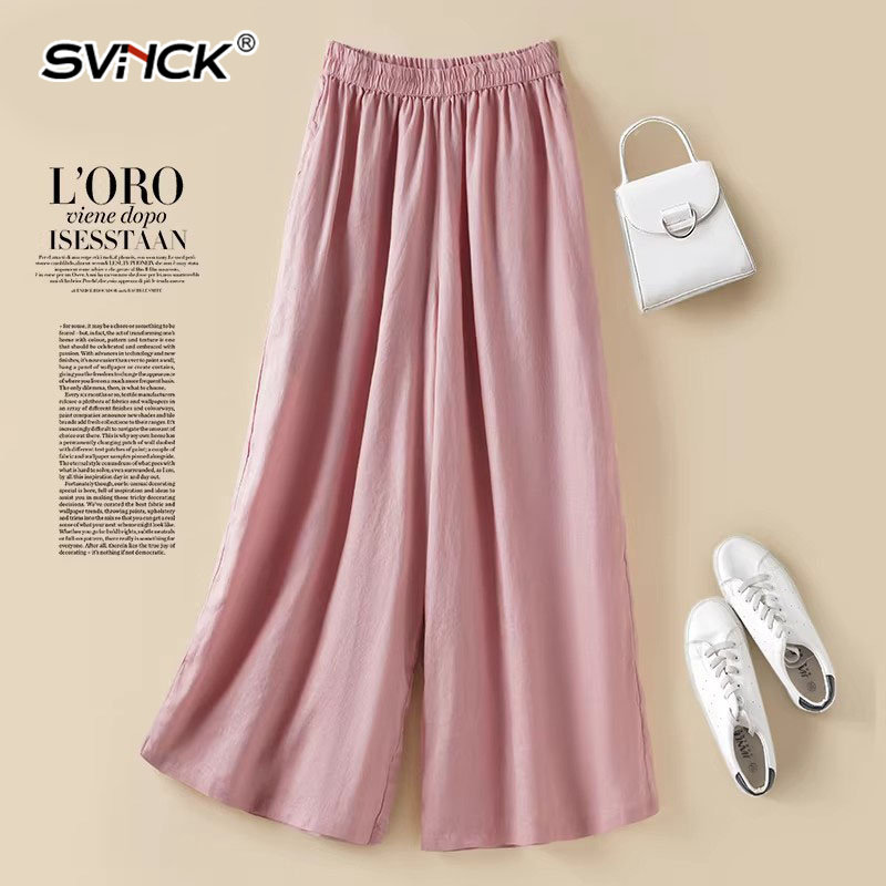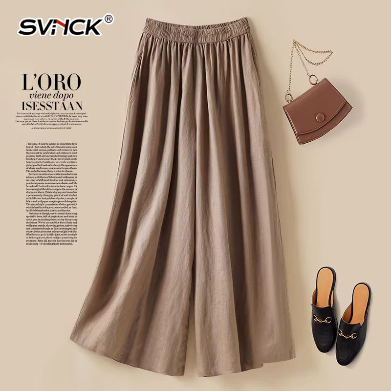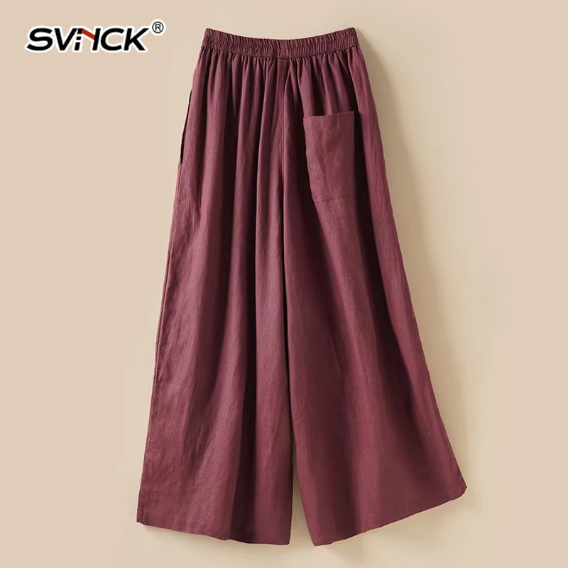 新款 女2026夏季 薄款 直筒休闲裤 子 酒红色九分亚麻阔腿裤 夏天裤 裙裤