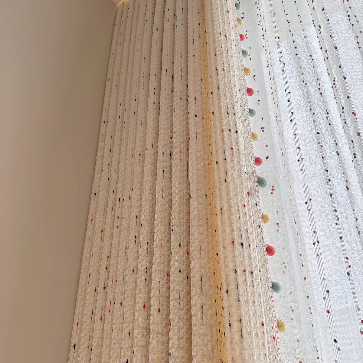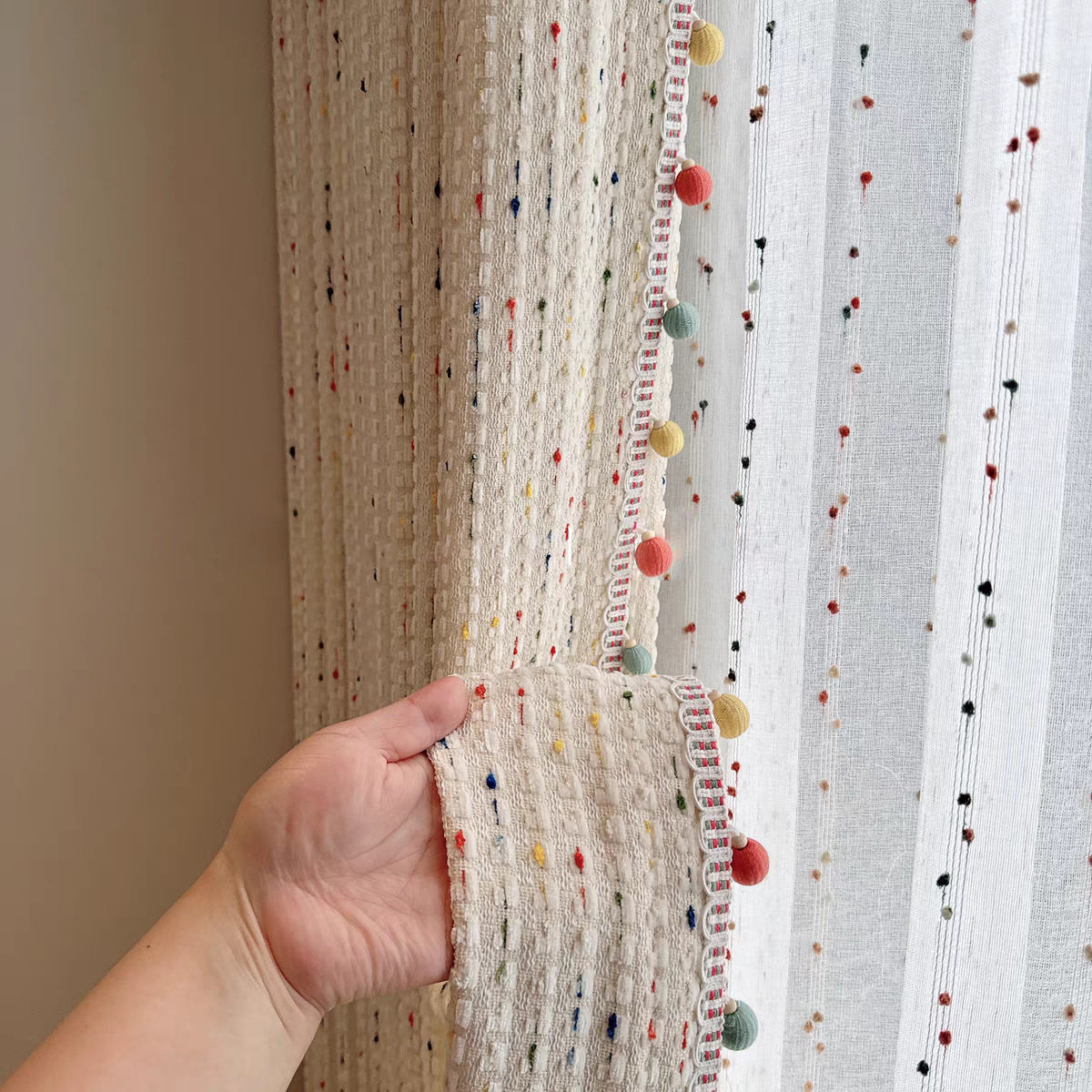 新款 奶油风多巴胺儿童房客厅卧室阳台半遮光卡通柔软棉麻雪尼尔帘