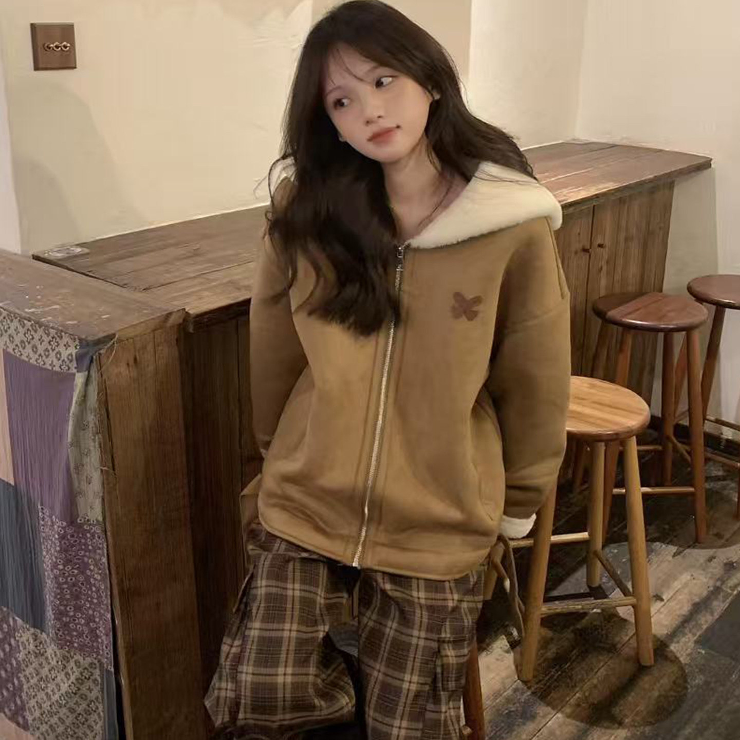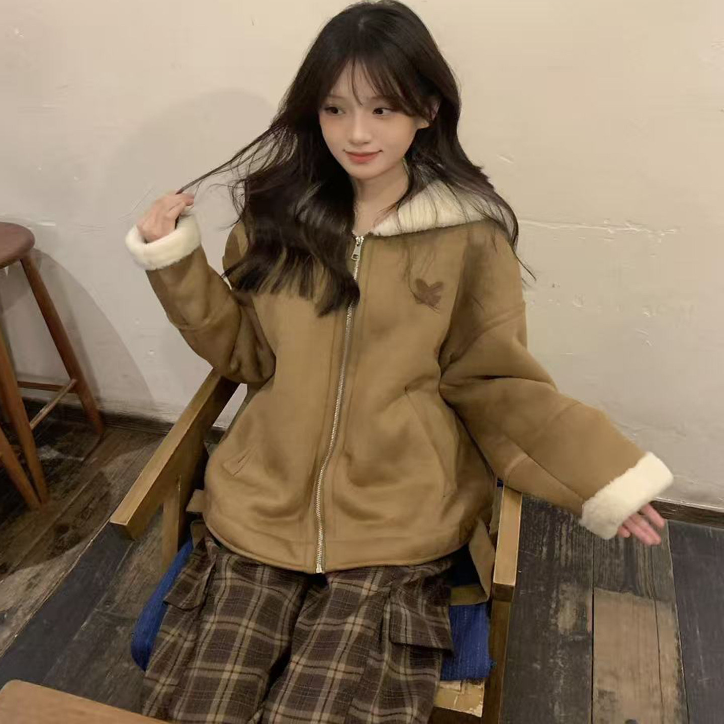 美式 慵懒风保暖羊羔毛上衣潮 复古加绒加厚麂皮外套女秋冬2025新款