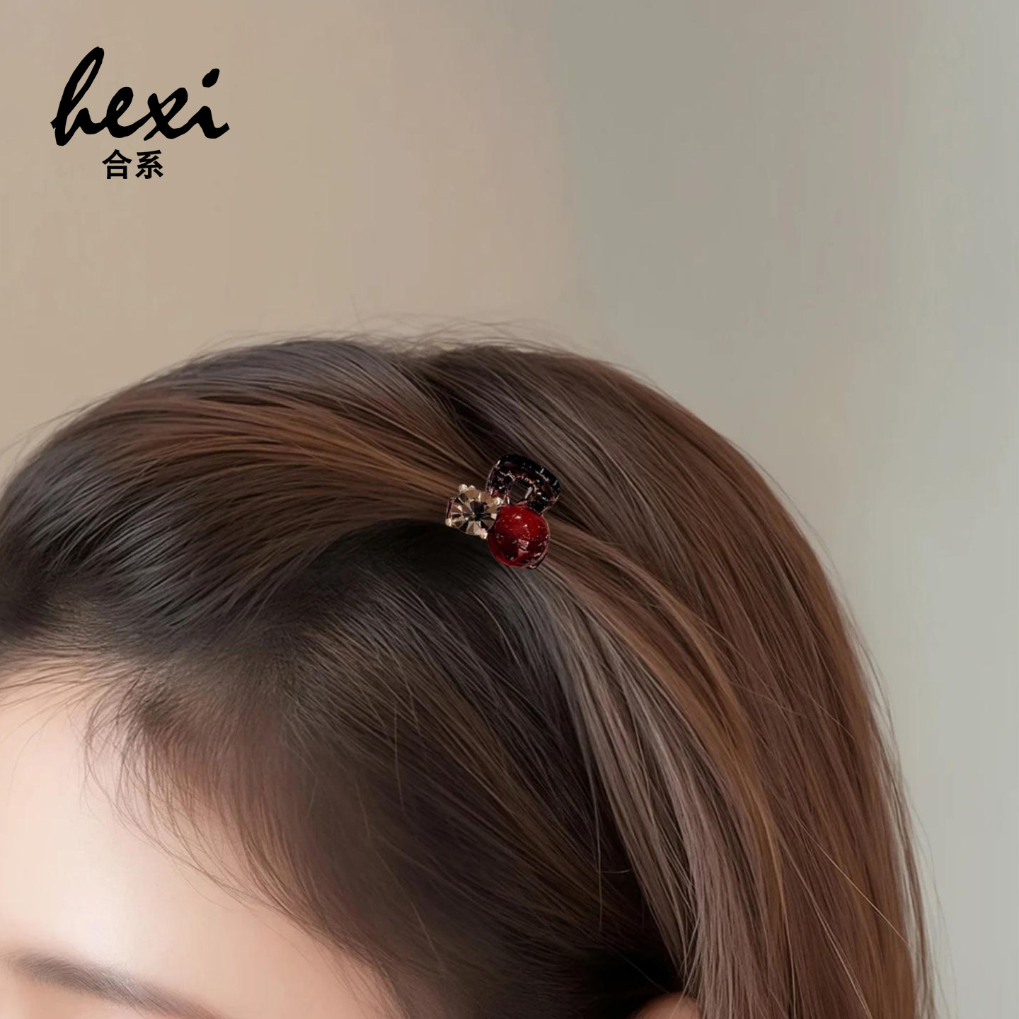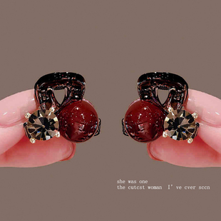 红色珍珠水钻发夹侧边精致小巧迷你小抓夹女刘海碎发夹小夹子头饰