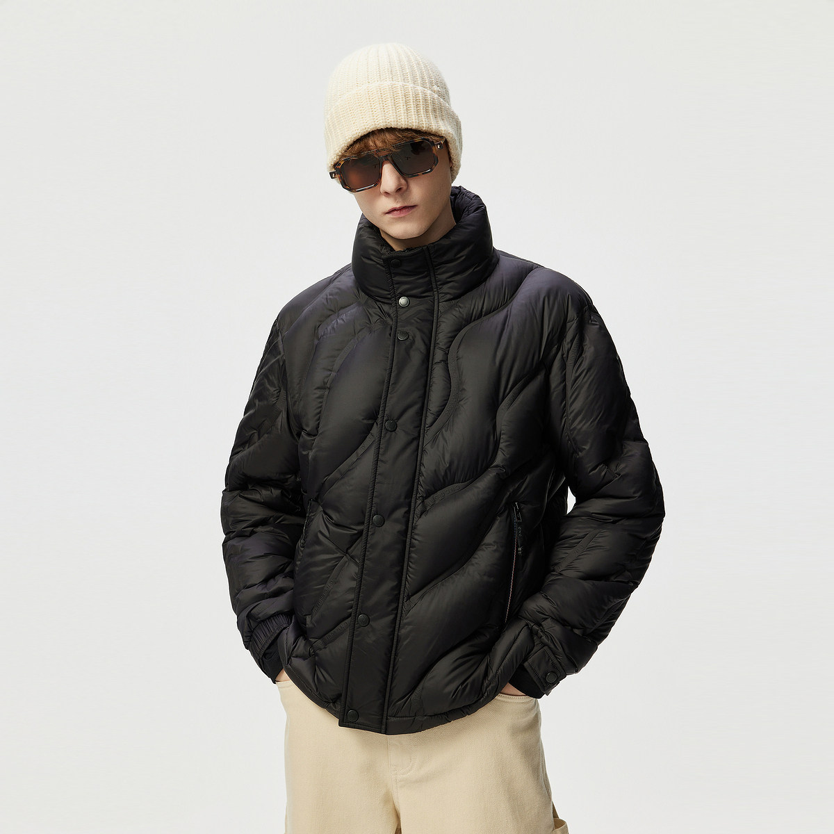 保暖外套 设计感厚款 CNC男装 奥莱潮流轻奢波纹立领羽绒服男冬季