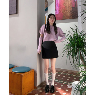 孕妇毛呢半身裙秋冬季 加厚小个子黑色显瘦孕期托腹A字包臀短裙子