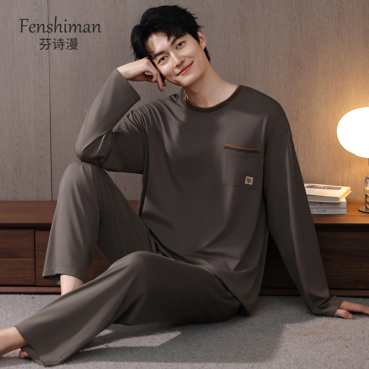 套头宽松家居服套装 猫人纯棉男士 2025年新款 长袖 可外穿 睡衣春秋季