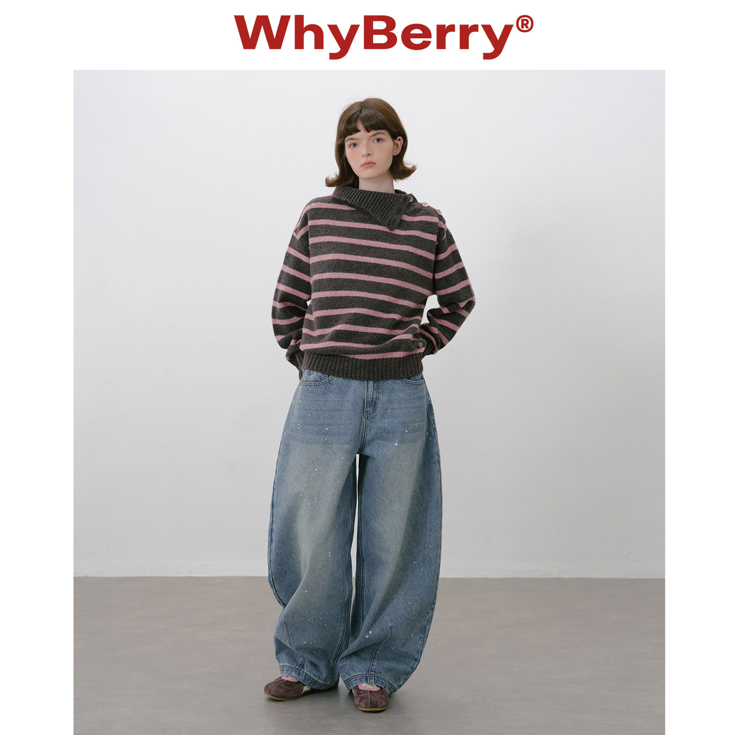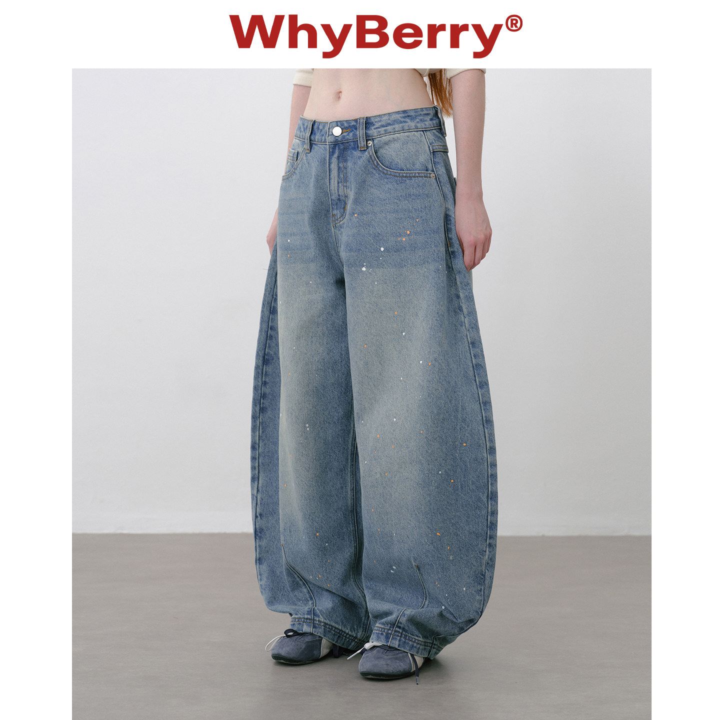 复古休闲百搭牛仔裤 WhyBerry 泼墨水洗弯刀裤 牛仔廓形 25AW