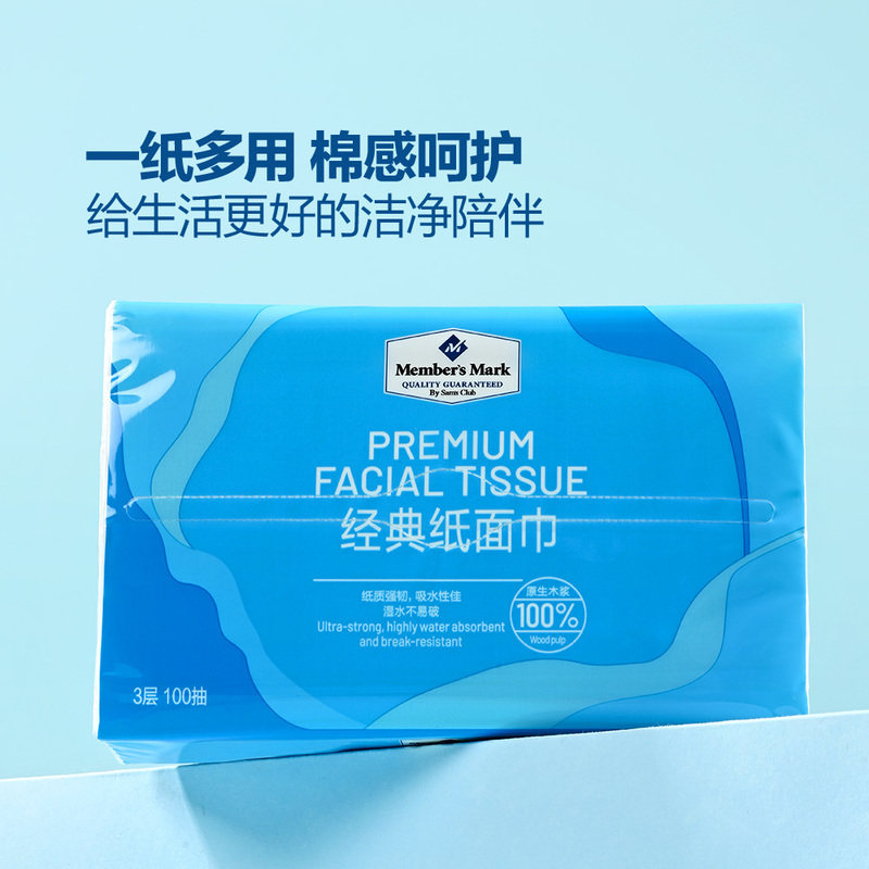 24包三层湿水不易破餐巾纸卷纸卫生厕纸 纸面巾100抽 山姆代购 经典