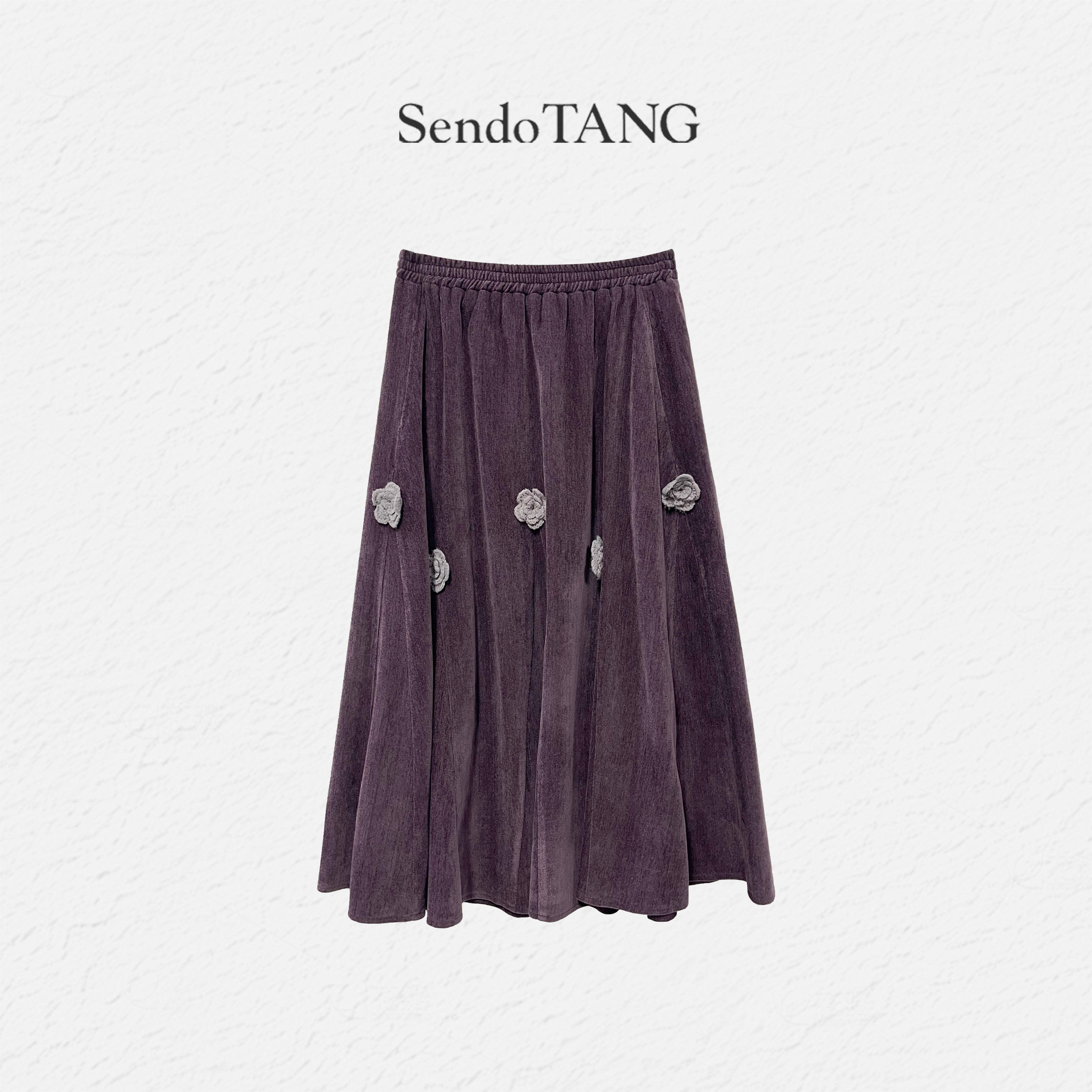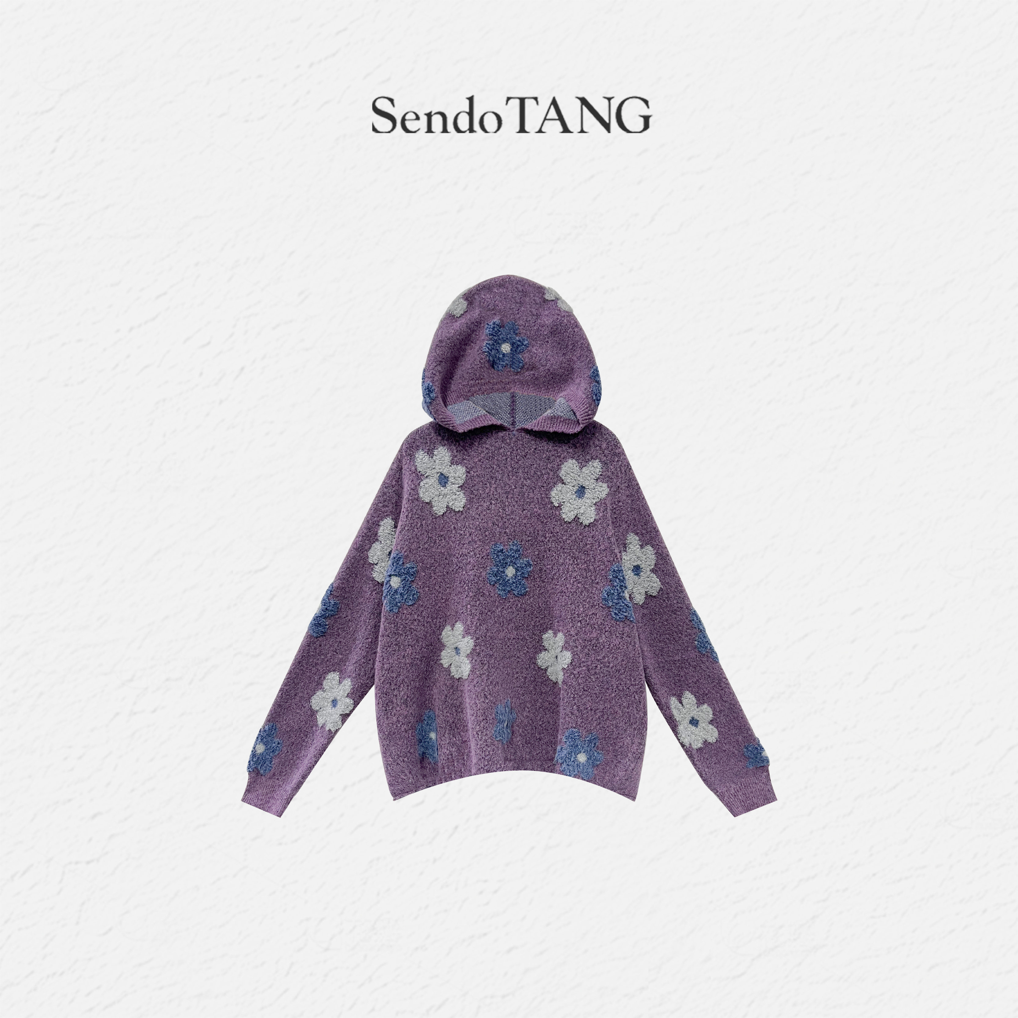 显瘦大码 紫色立体花朵连帽毛衣半裙套装 新款 胖多女装 遮肉 拾趣