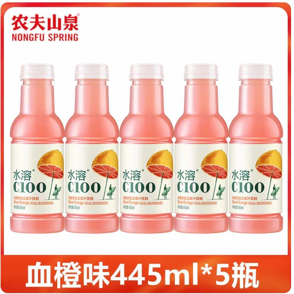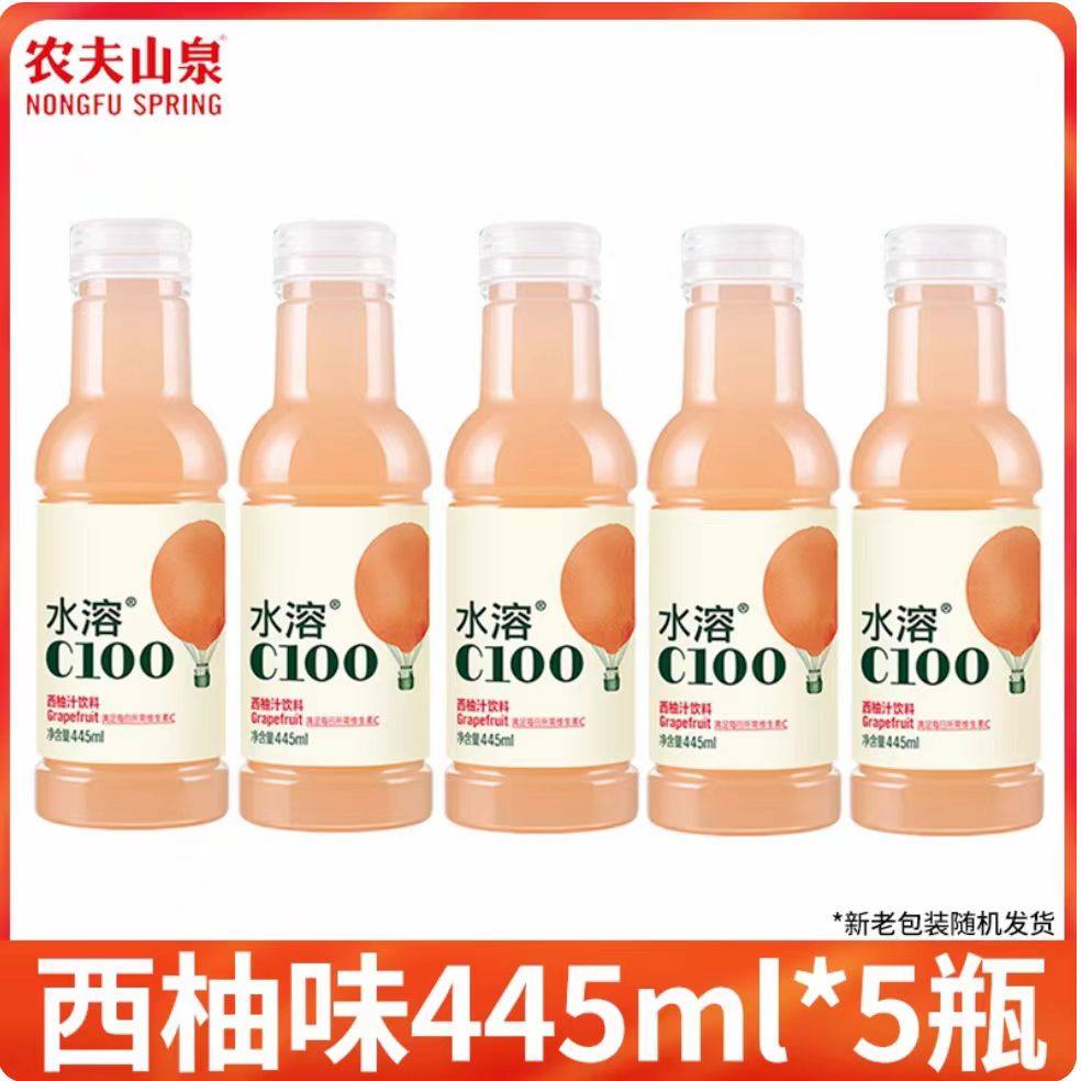 农夫山泉维C水溶100柠檬445ml 5瓶维生素饮料西柚血橙果味饮
