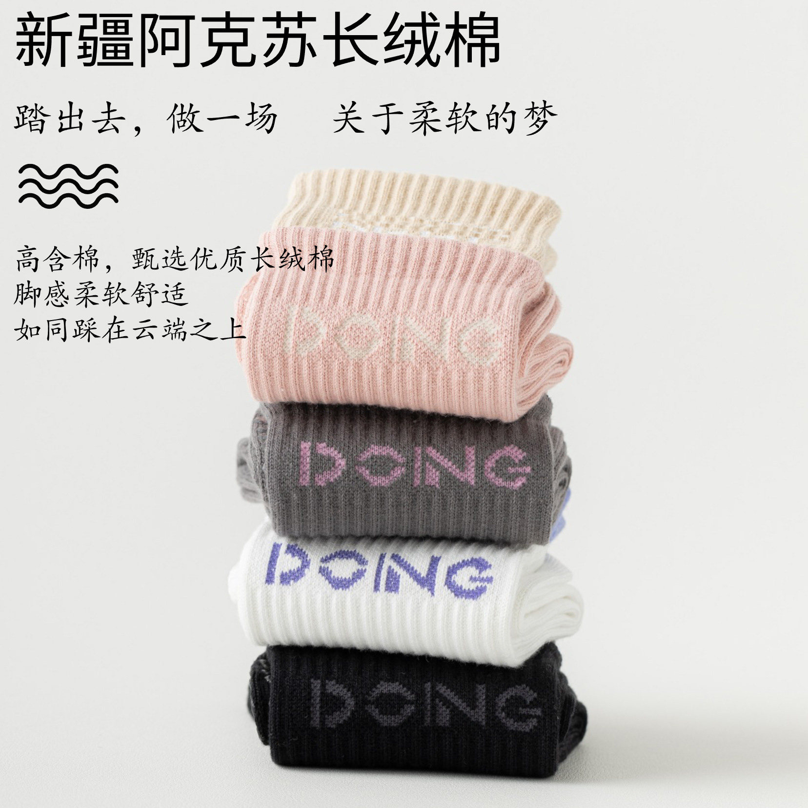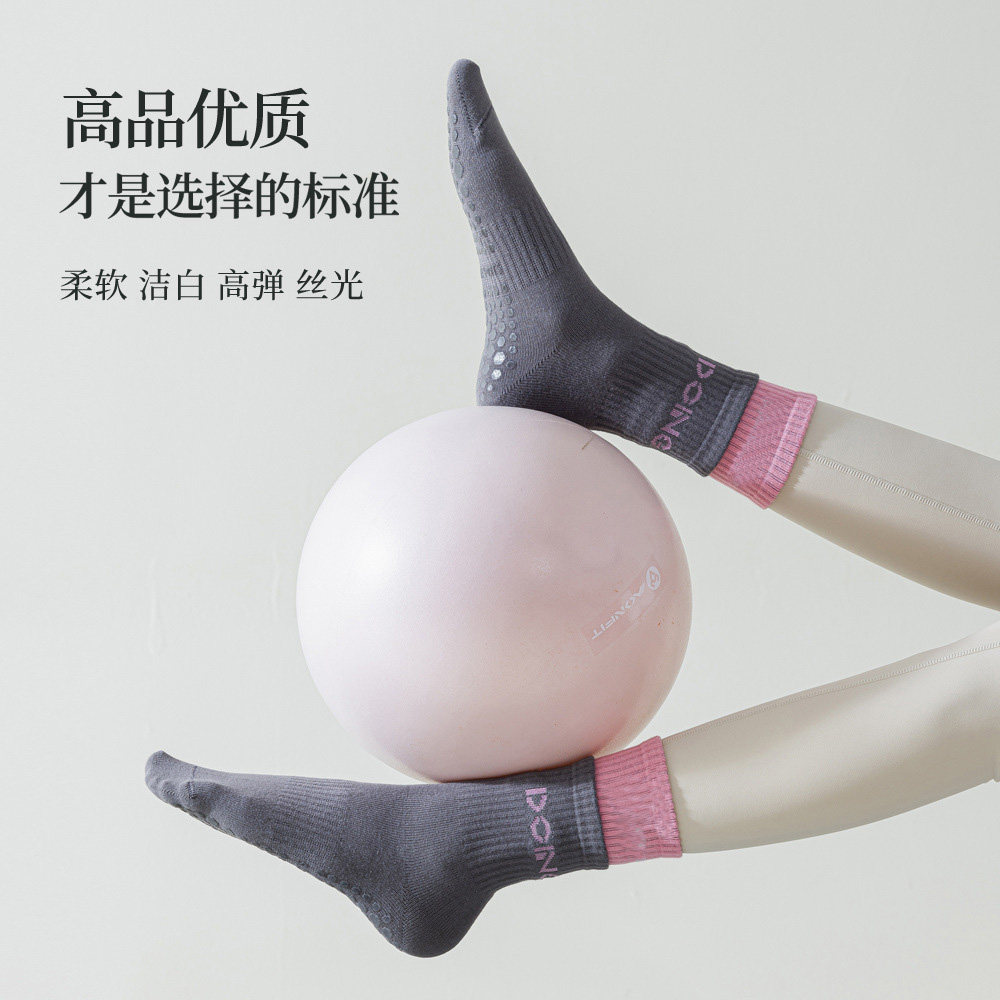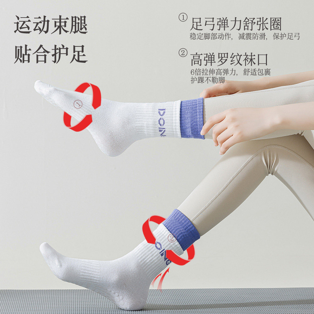 瑜伽袜中筒袜纯棉防滑硅胶室内健身普拉提女士双罗口运动袜