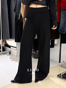 宽松显瘦休闲裤 羊毛针织阔腿裤 高腰抽绳直筒裤 加长拖地裤 女秋冬季