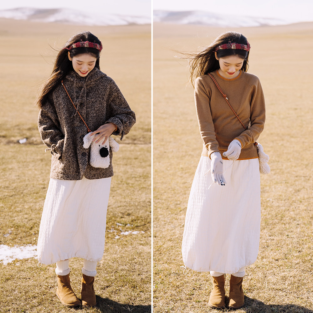 内蒙亲测可以防风过冬 模特自留款 古苔 老寒腿保暖夹棉日系半身裙