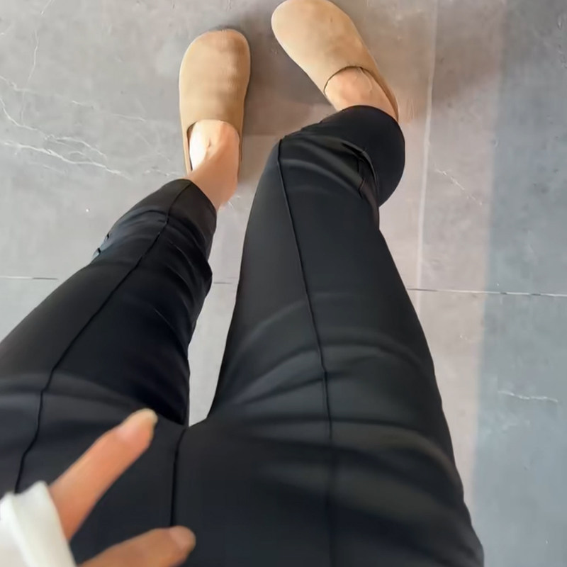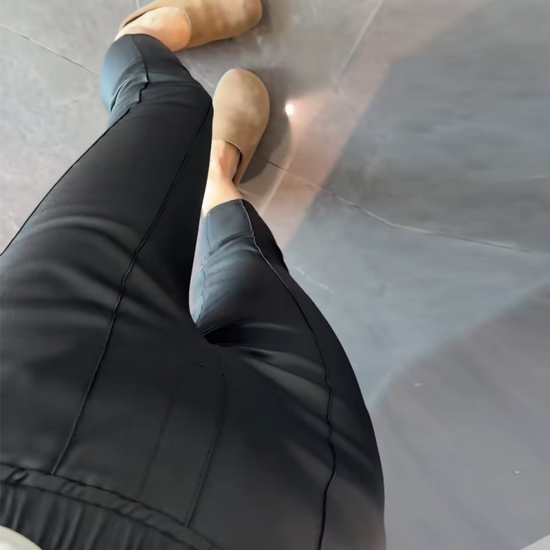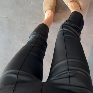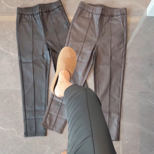 铅笔裤 九分净版 高腰显瘦修身 秋冬欧洲站2025PU涂层休闲加绒皮裤