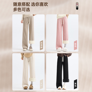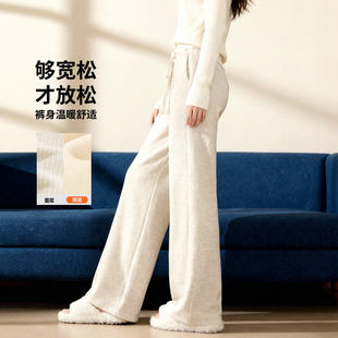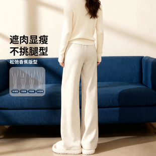 小个子仿羊绒休闲长裤 阔腿裤 子女秋冬加厚2025新款 雪中飞加绒裤