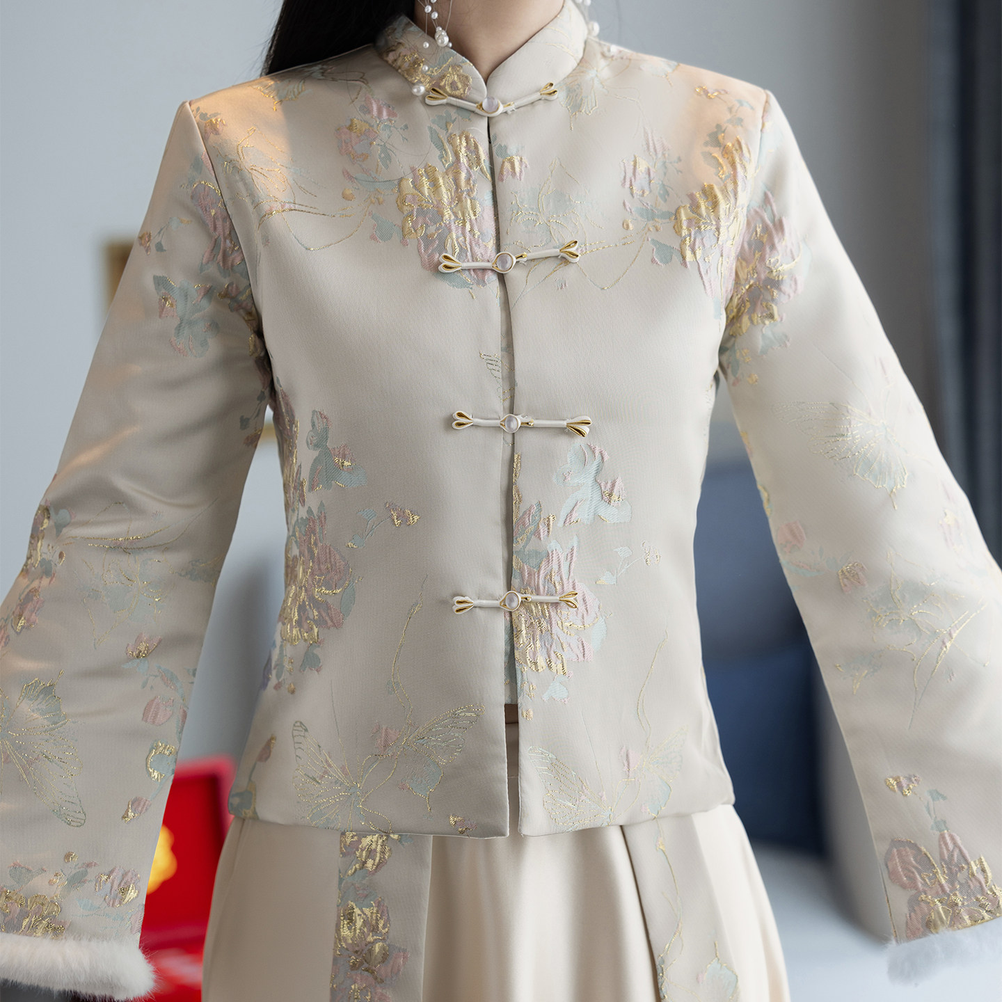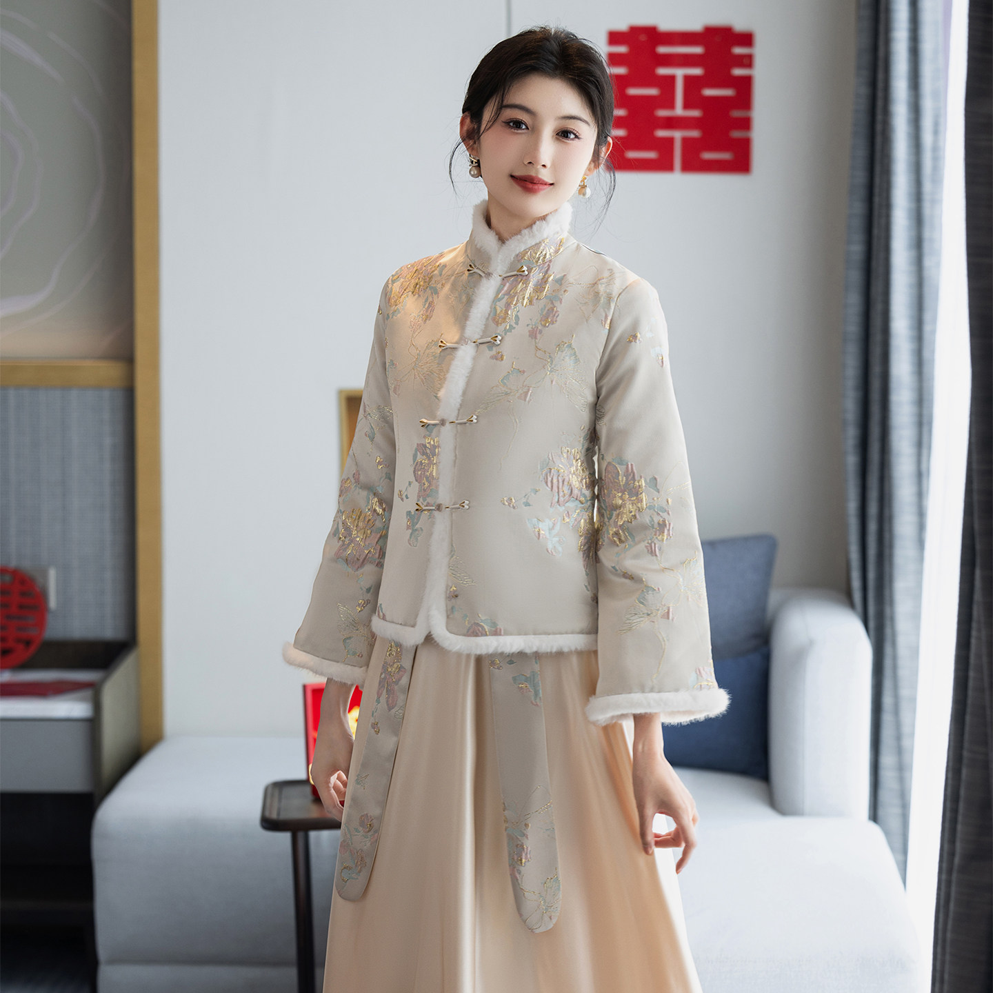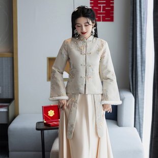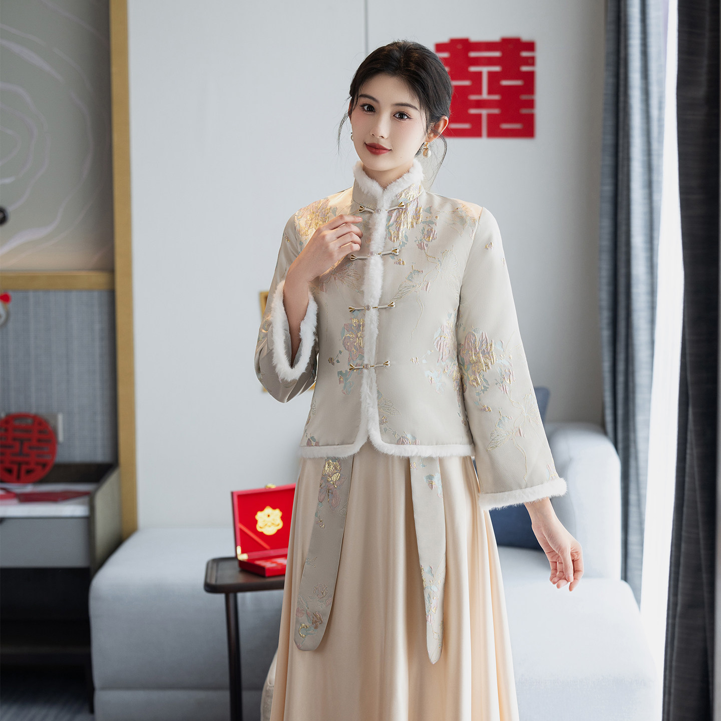 加绒高级姐妹团缎面旗袍伴娘裙 冬季 出租赁中式 伴娘服女2025新款