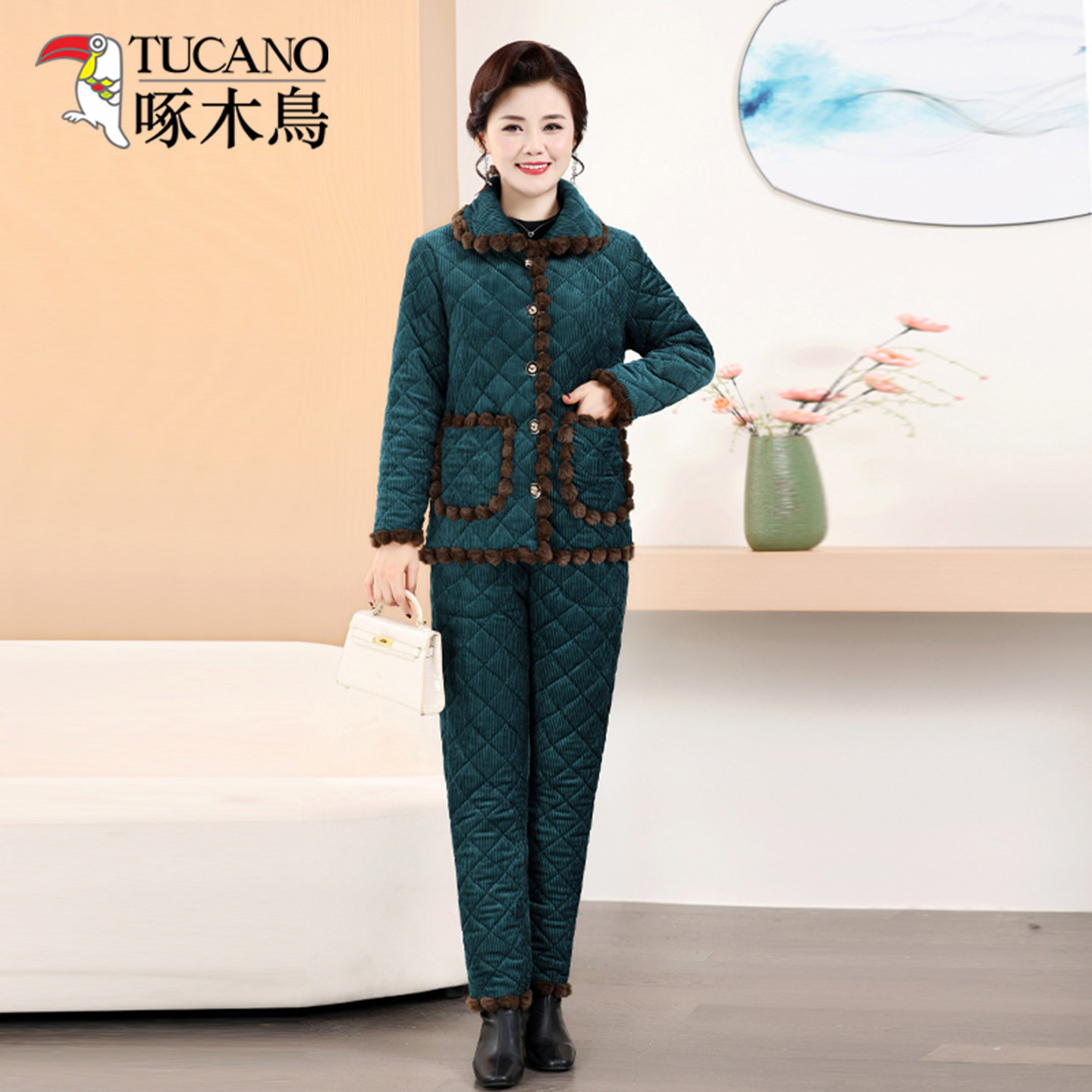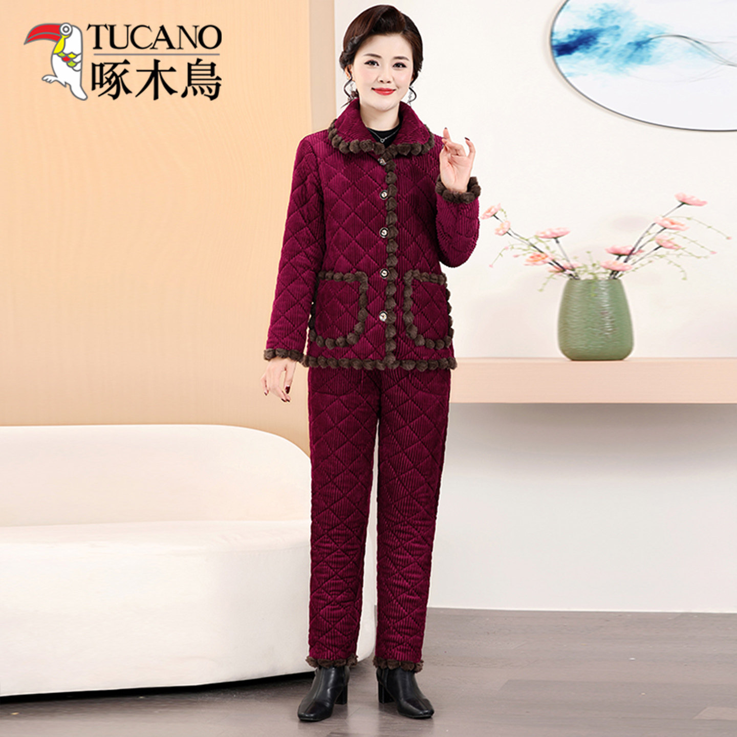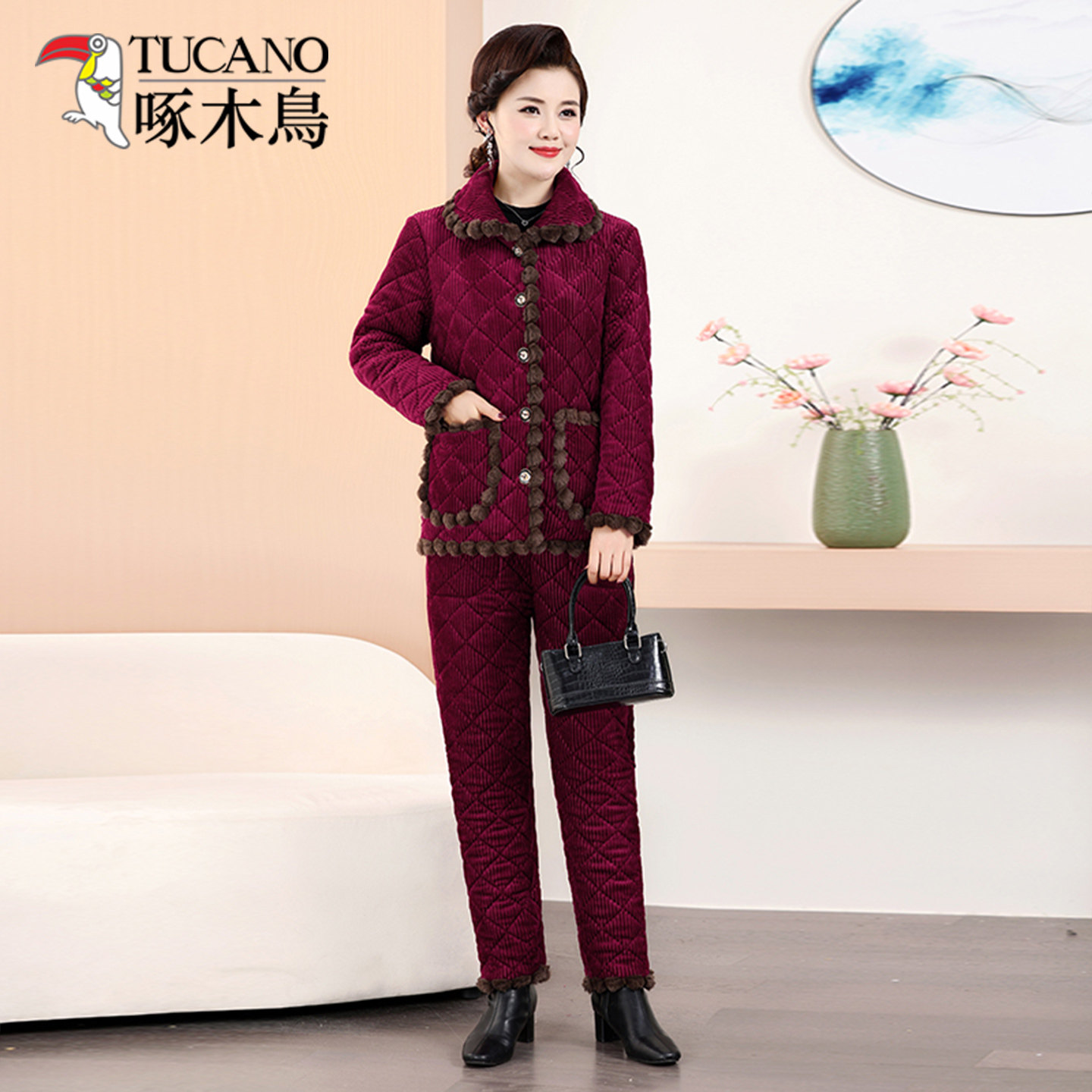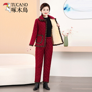 洋气棉衣棉裤 中年女装 加绒加厚洋气妈妈装 啄木鸟2025年秋冬新款