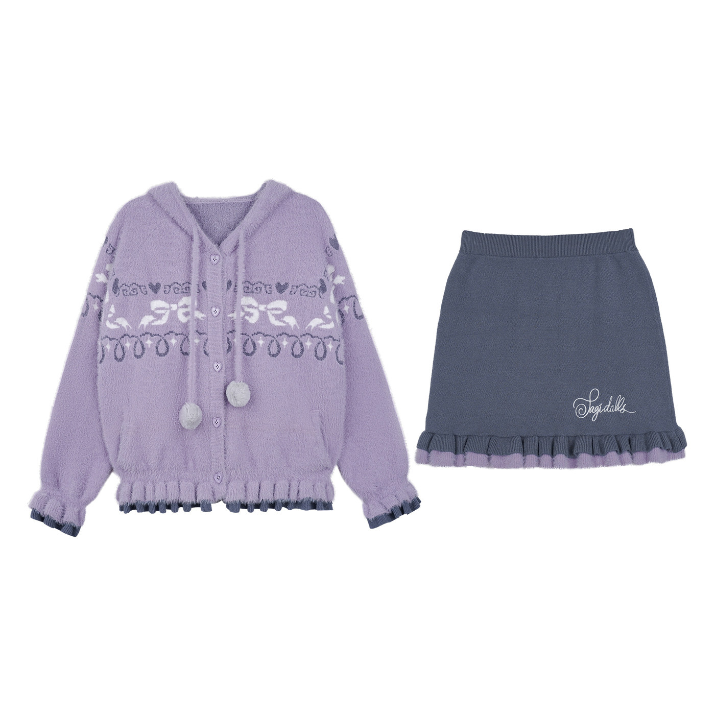 短裙套装 SagiDolls少女斗志 2025新款 灰紫毛衣女款 可爱 一口甜糯