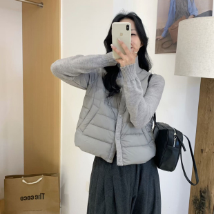 针织拼接排骨羽绒服女短款 90白鸭绒外套 立领设计感2025新款