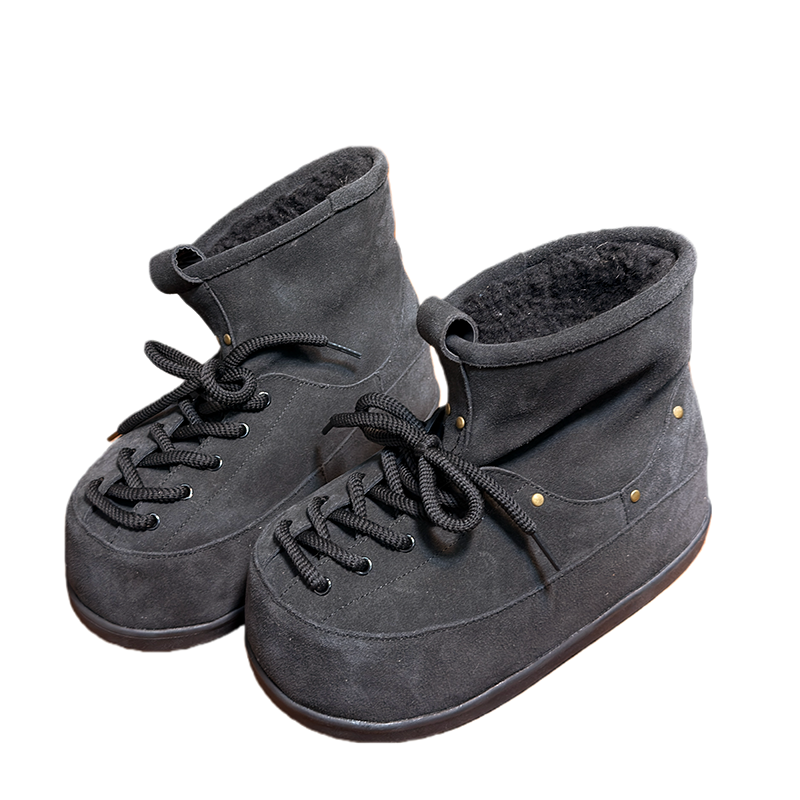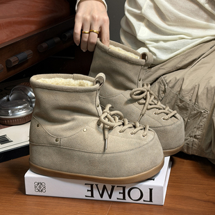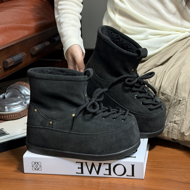 磨砂真皮丑萌大头松糕厚底马丁靴女复古小个子增高加绒保暖雪地靴