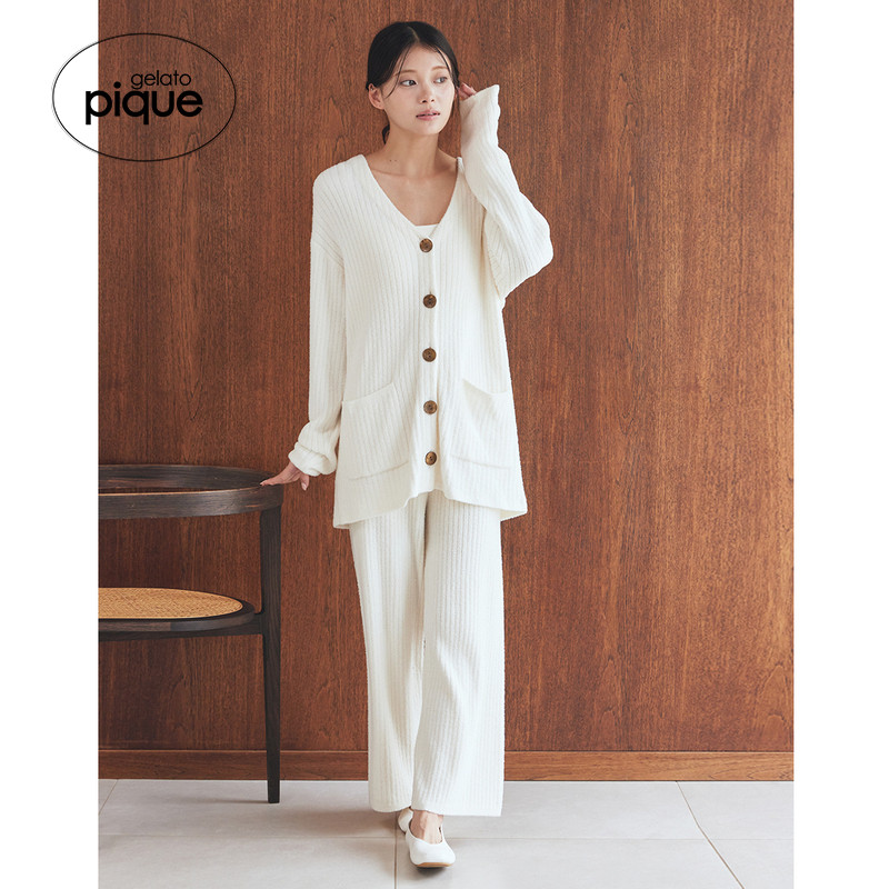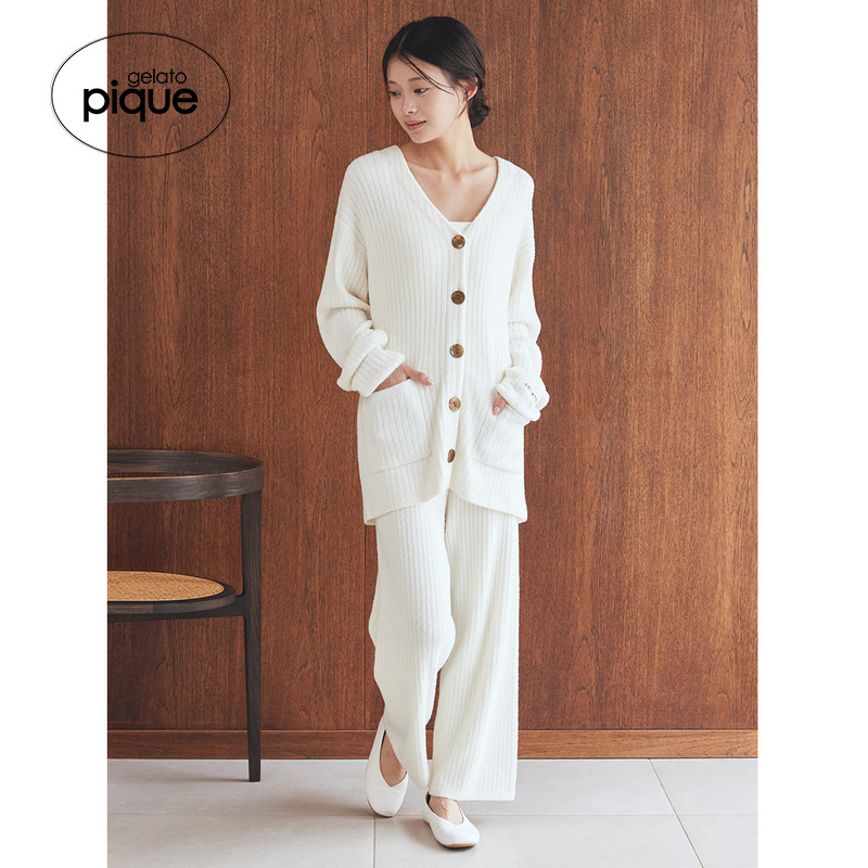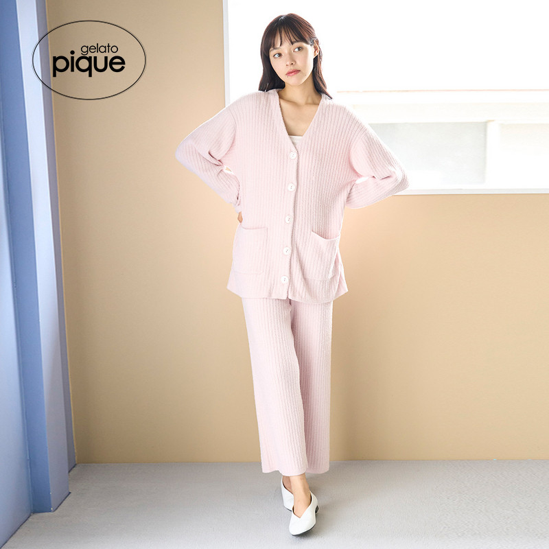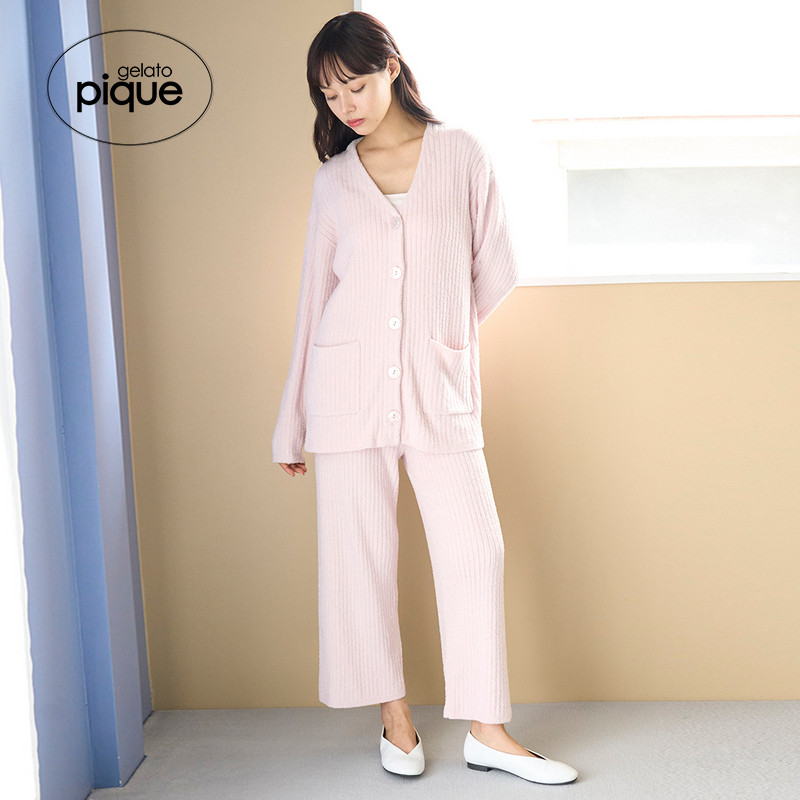 家居服PWNT255025 女睡衣纯色奶昔竖纹开衫 gelato pique25秋冬新品