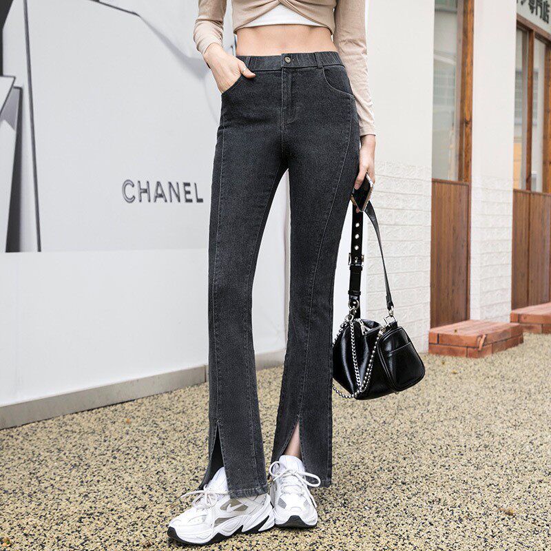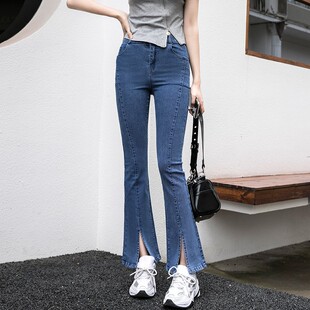 2026年春季 子显瘦高腰开叉弹力微喇叭裤 新款 裤 瘦腿 大码 胖MM牛仔裤