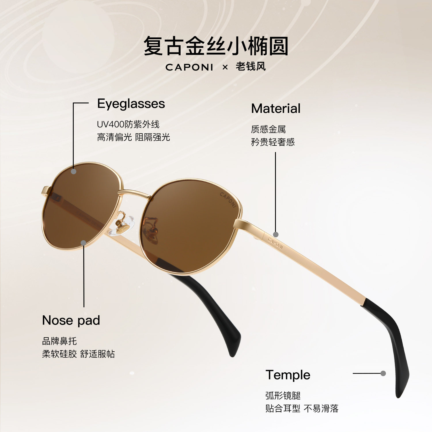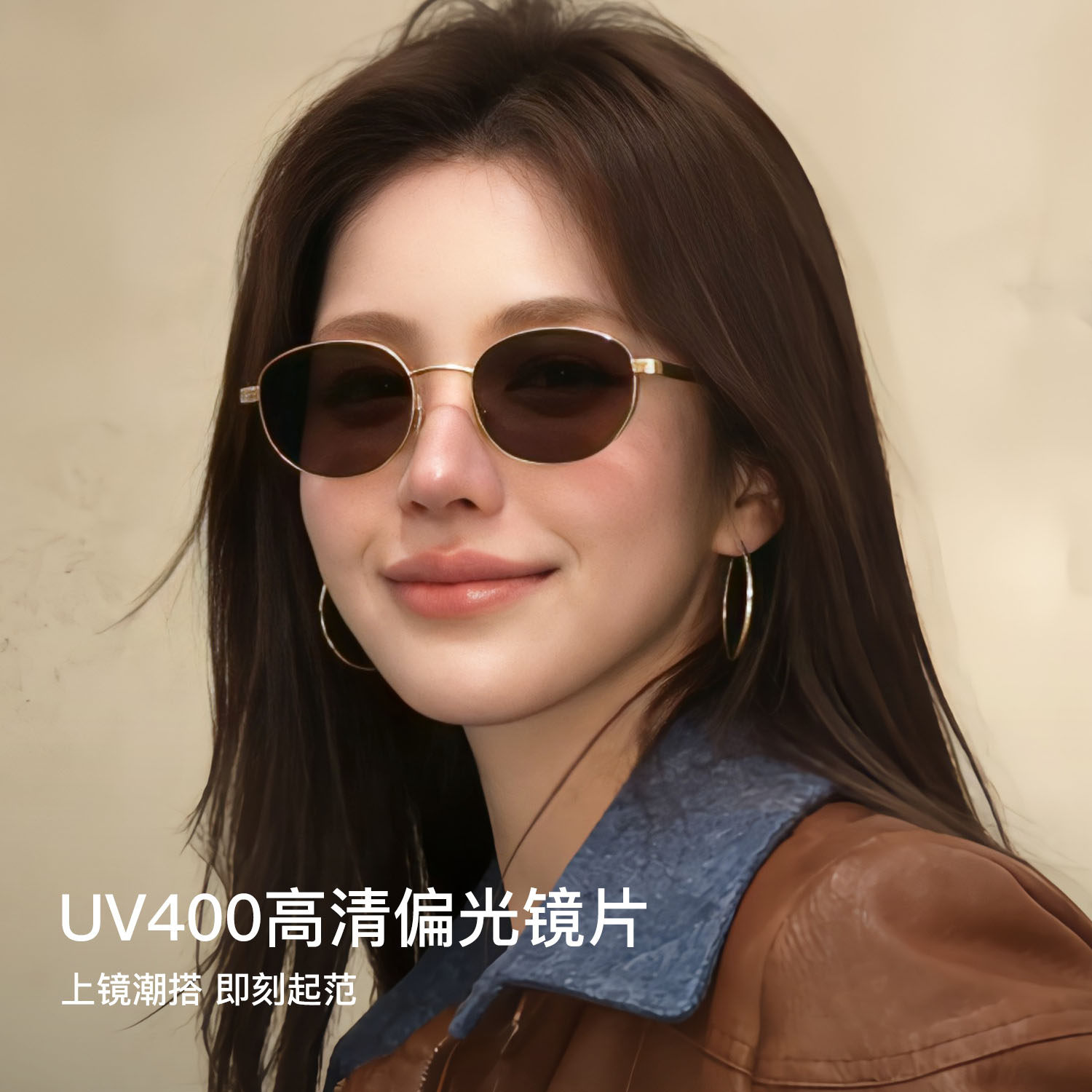 法式 防晒防紫外线复古高级感偏光太阳镜 椭圆老钱风墨镜女2026新款