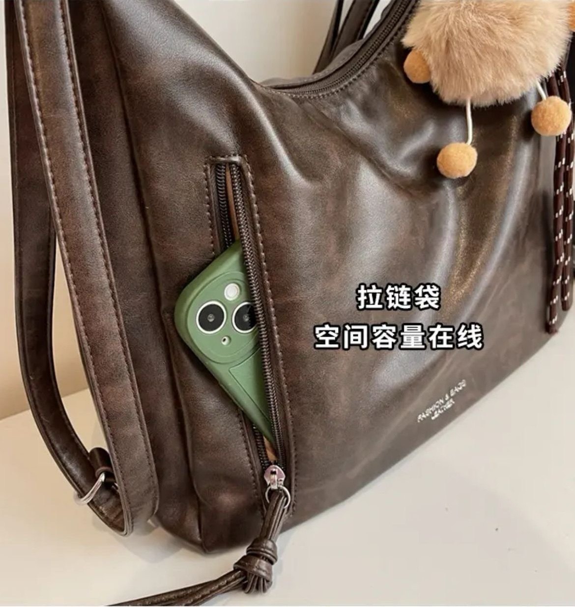 复古双肩包2025包女新款 通勤托特斜挎包休闲大容量潮流 单肩时尚