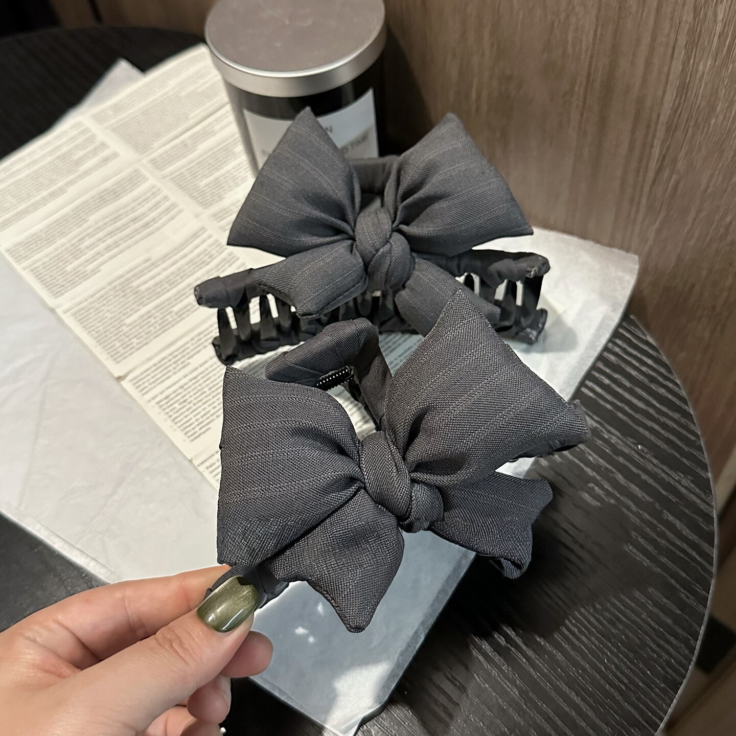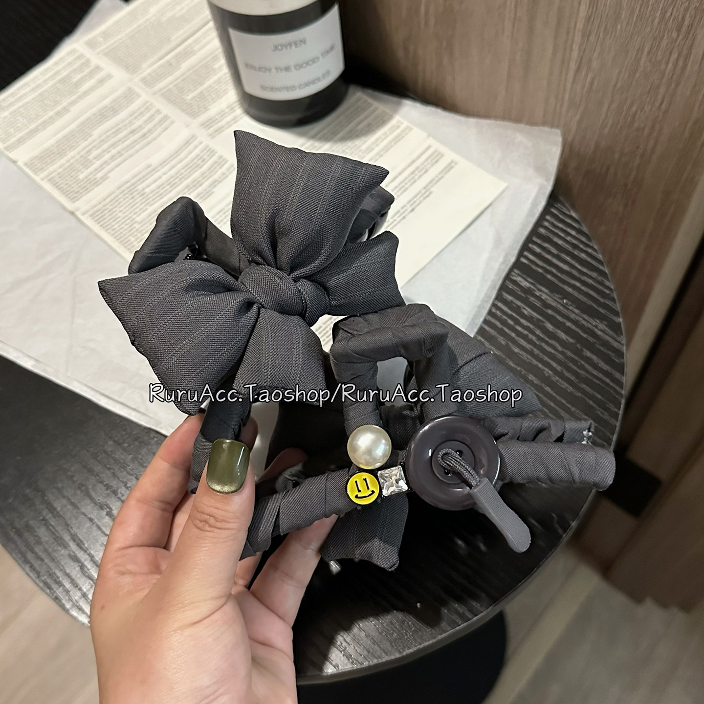高级格雷系灰色充棉蝴蝶结笑脸抓夹大号韩国新款 鲨鱼夹后脑勺发夹