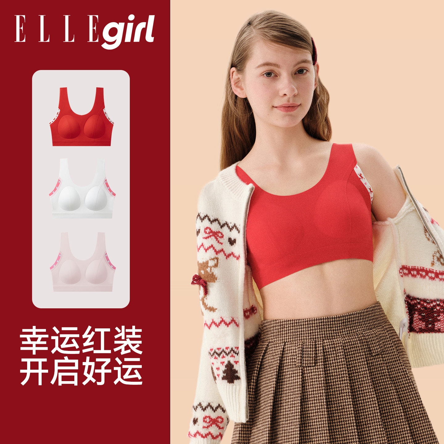 女童红色本命年内衣套装 2025马年衣服儿童少女发育期文胸背心12岁