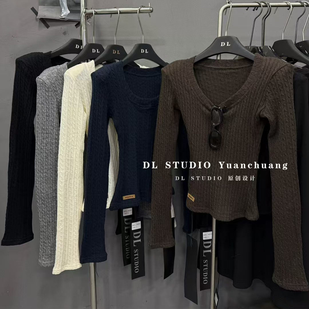 针织衫 2025秋冬新款 长袖 宽松显瘦百搭贴标V领短款 女上衣女潮 韩版