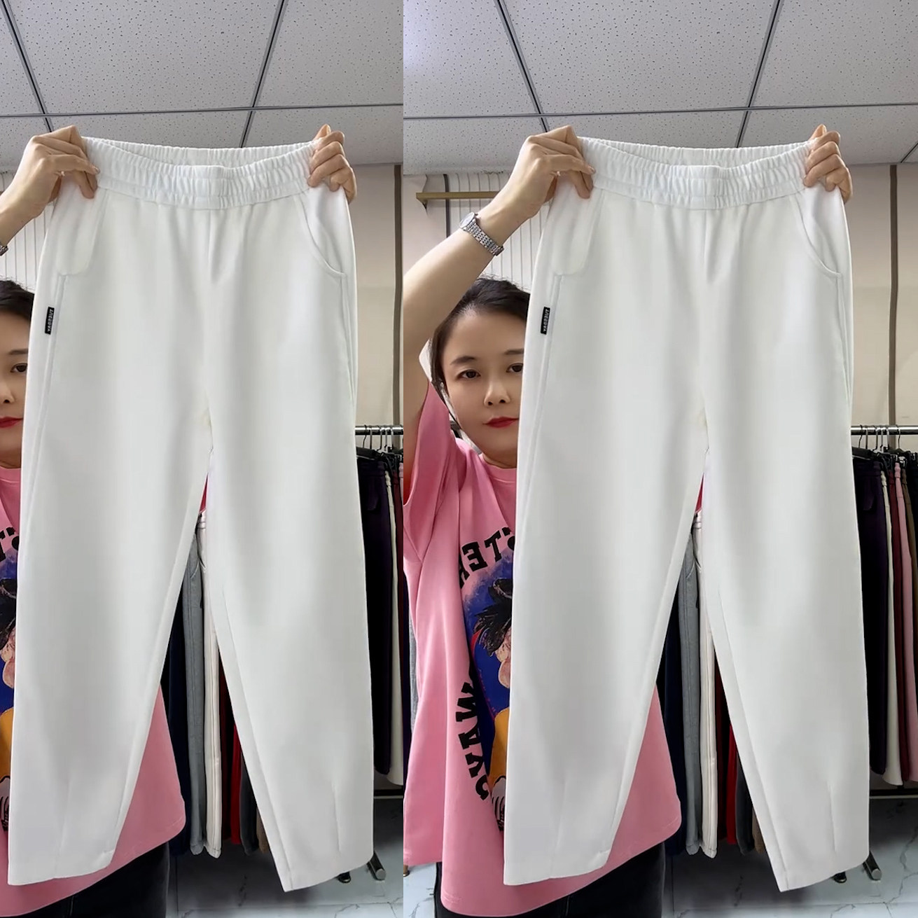 女松紧腰气质减龄白色哈伦裤 2025秋冬款 休闲弹力小个子九分运动裤