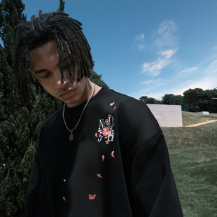@港仔文艺男 日系套头上衣 420g重磅印花圆领卫衣男秋冬2025新款