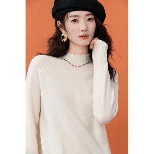 宽松毛衣百搭羊毛针织打底衫 羊绒衫 女100羊绒半高领2024秋冬新款