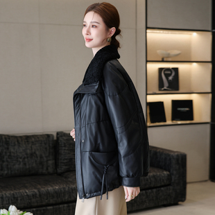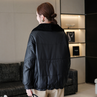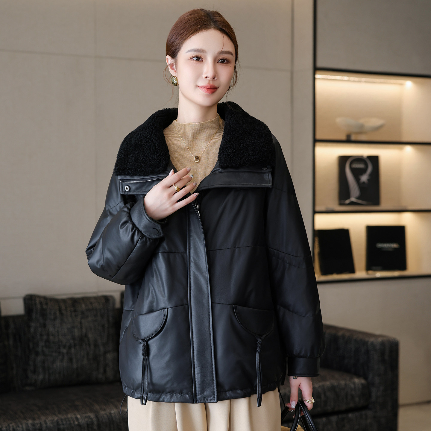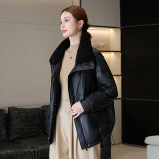 潮 真皮羽绒服羊羔毛领绵羊皮皮草外套短款 海宁皮衣女2025冬季 新款