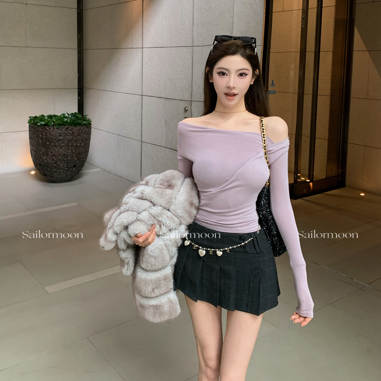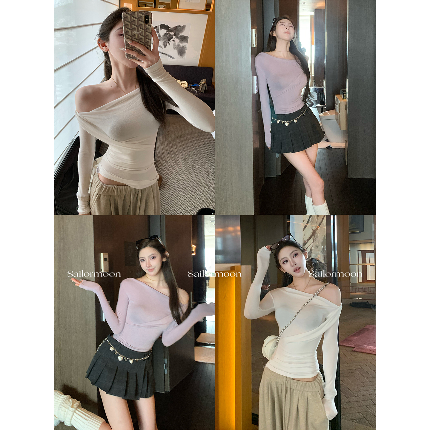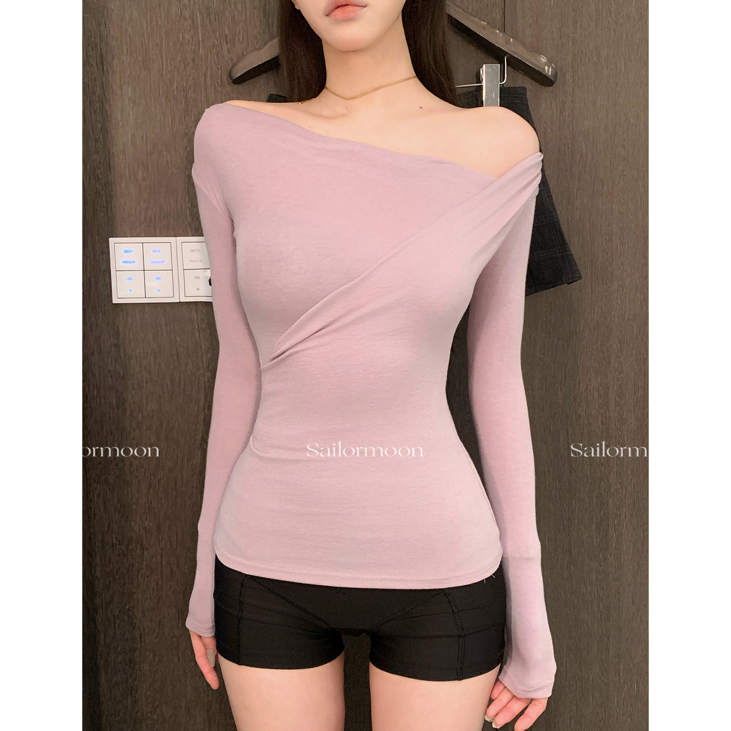 上衣女秋内搭打底衫 含羊毛一字肩斜肩长袖 长期主义 PROJECT