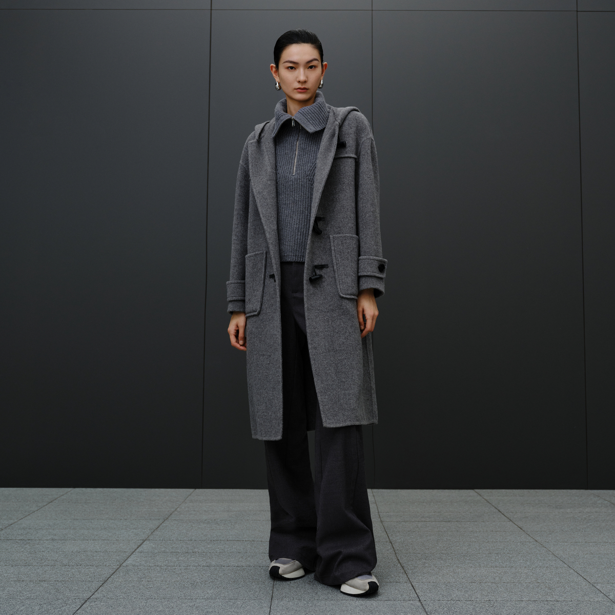 艾诺丝雅诗 羊毛&牦牛绒学院风毛呢外套女冬41022336 韩剧大衣