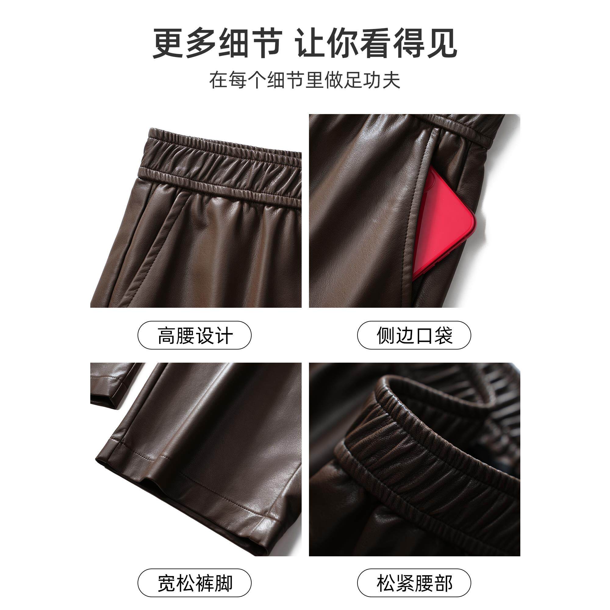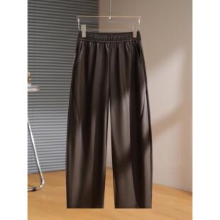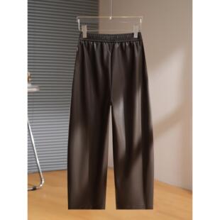 垂感高腰小个子显瘦弯刀裤 秋季 女2026新款 拉夏贝尔黑色高腰PU皮裤