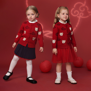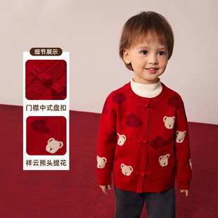 男女宝宝新中式 26年新款 PawinPaw卡通小熊童装 针织开衫 新年