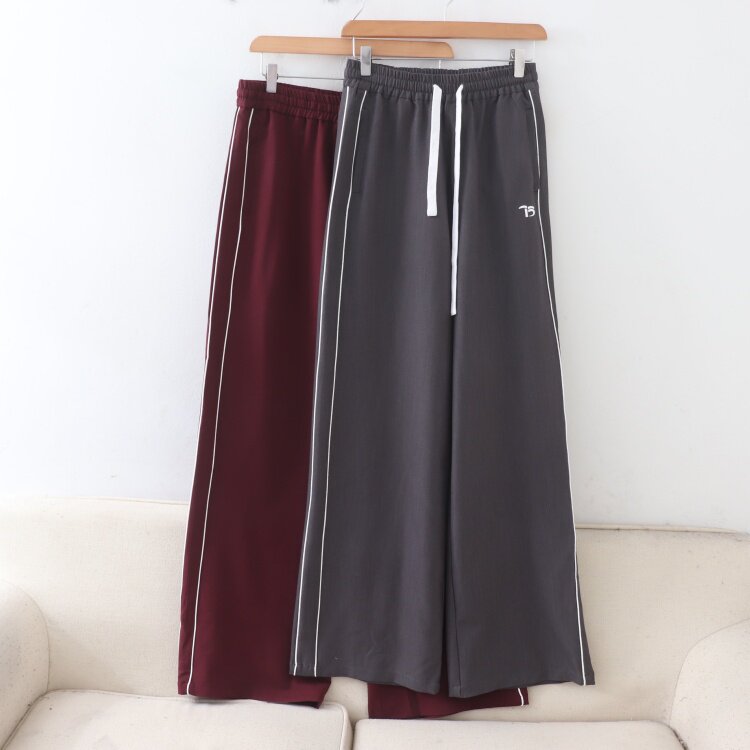 D01068日单秋新款 客供松紧抽绳系带宽松显瘦女纯色通勤休闲直筒裤