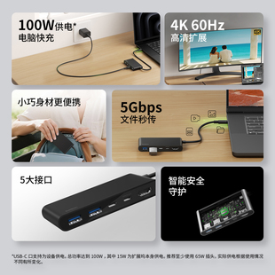 Belkin贝尔金五合一便携拓展坞100W供电USB C适用苹果Mac笔记本电脑iPad转换器HDMI高清4K60Hz拓展10Gbps秒传