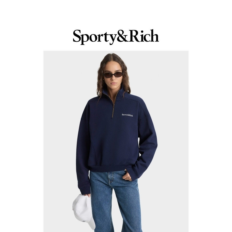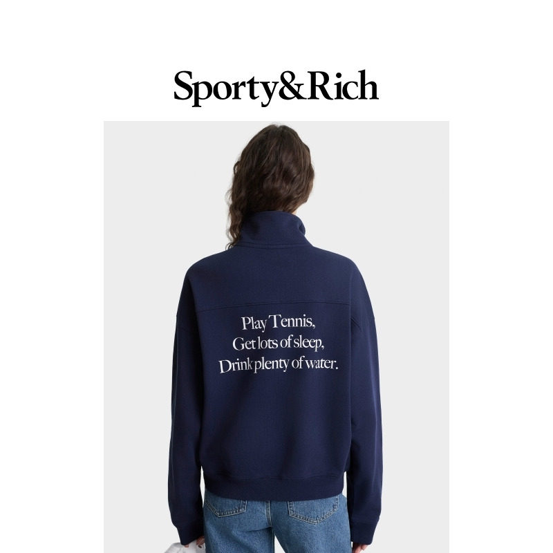 网球美式 Tennis系列男女同款 Sporty&Rich 立领拉链卫衣 明星同款