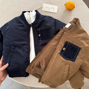 儿童夹棉外套冬季 中小童潮牌棉衣服潮宝宝字母棉袄女洋气 2025新款