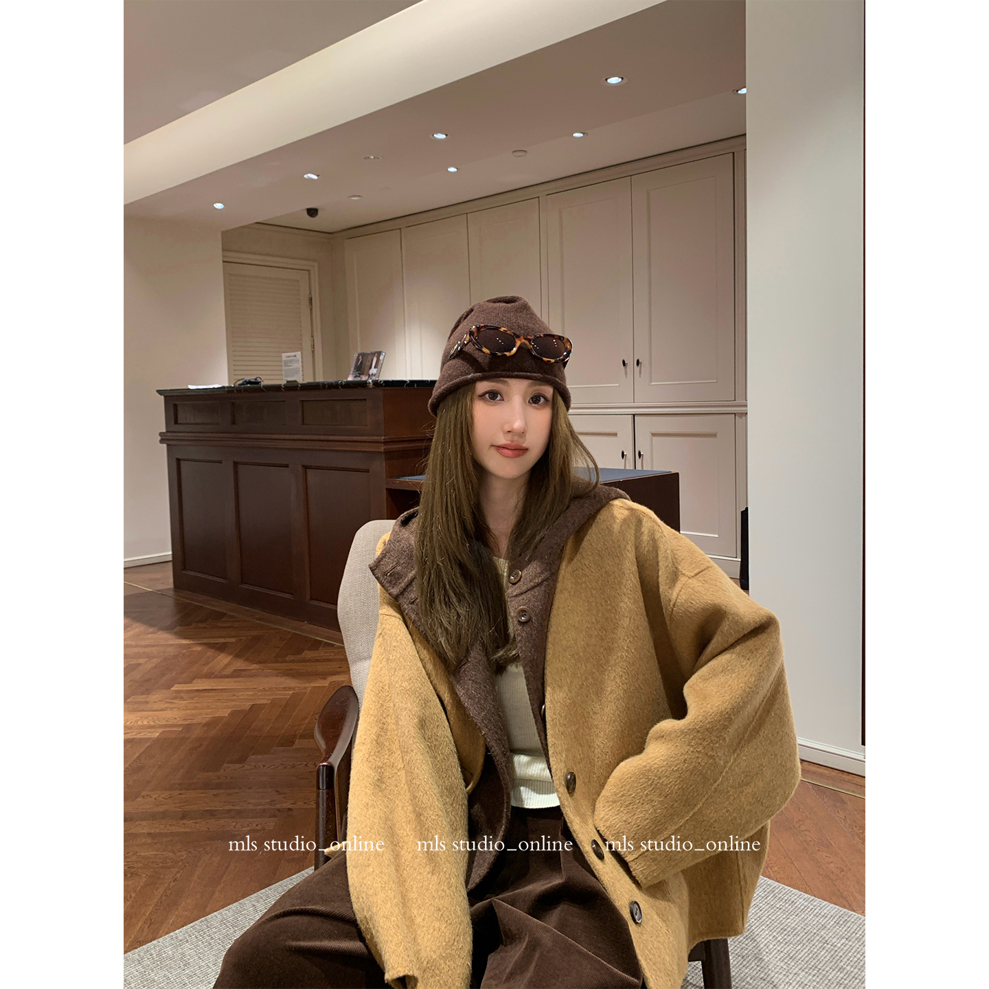60羊毛10羊驼咖色毛呢外套女秋冬大衣 金敏喜2.0 Xinlei Lin