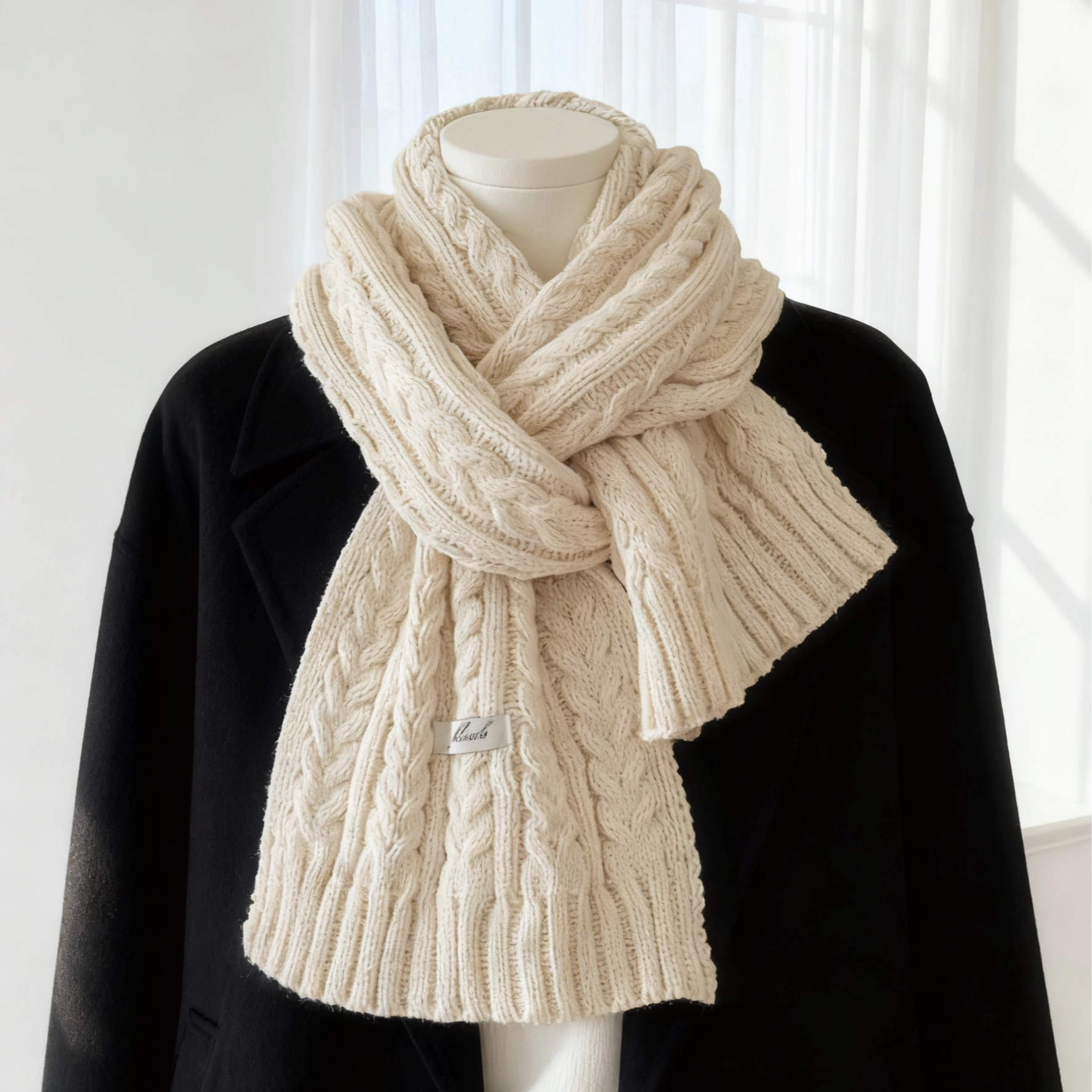 蓝色高级感毛线大麻花围巾2025新款 针织百搭韩系学生围脖男 女冬季
