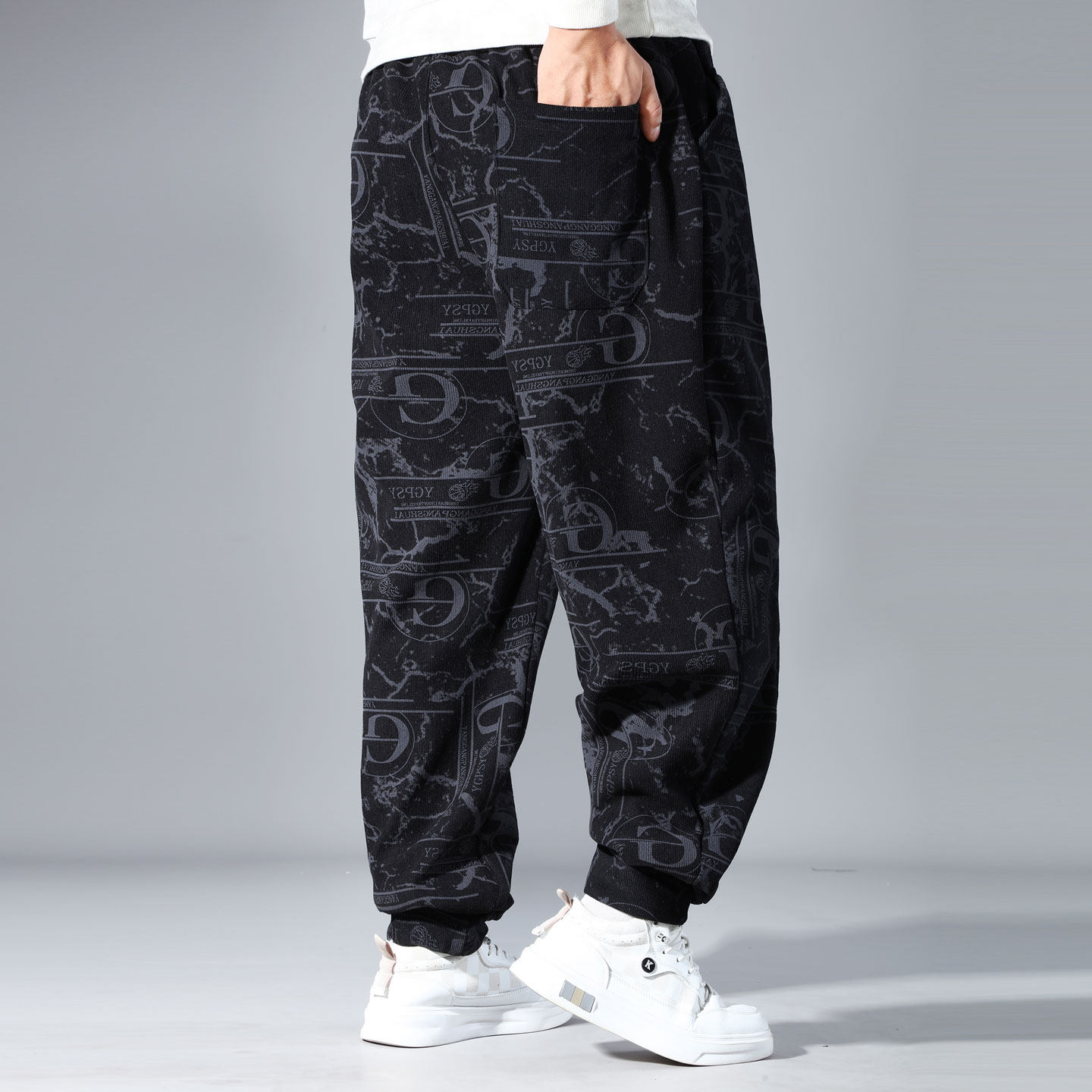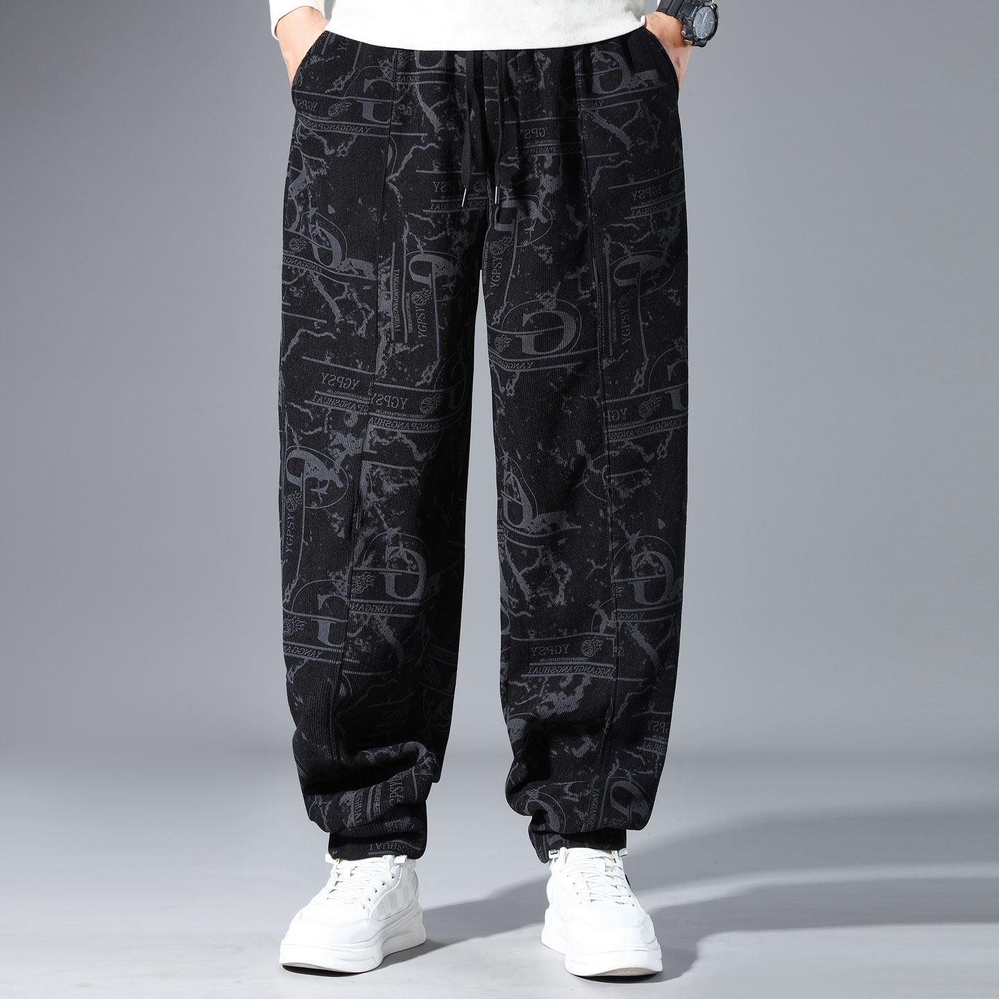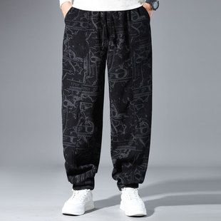 冬天帅气搭配一套 子束脚裤 350斤冬加绒加肥加大休闲裤 宽松男生裤