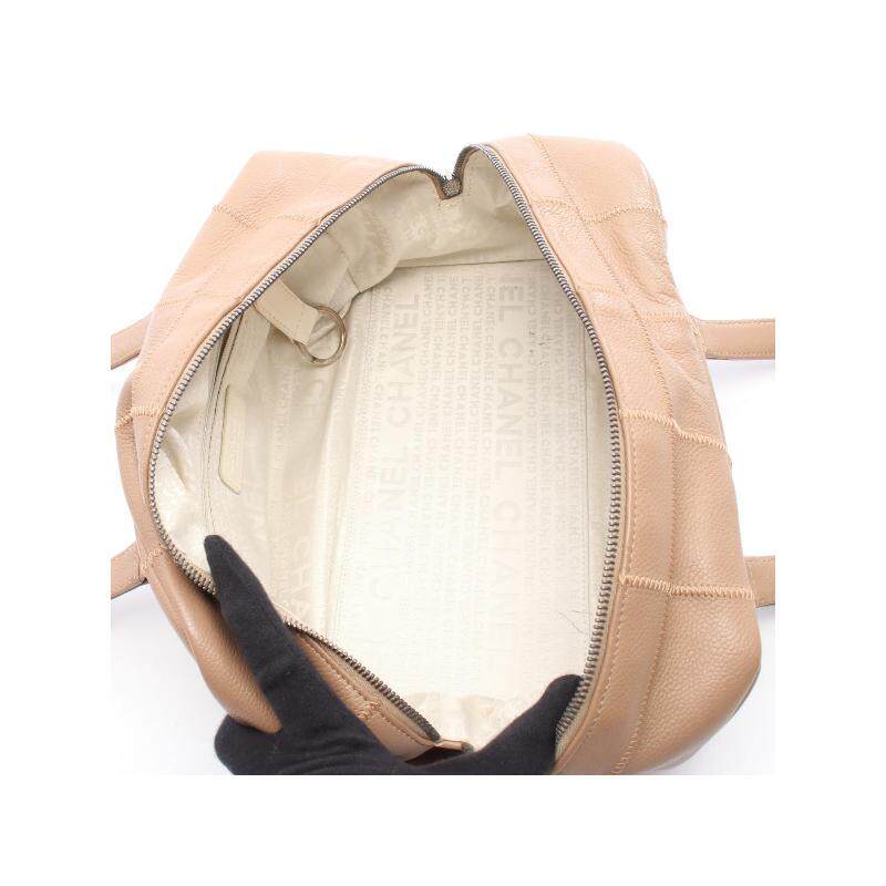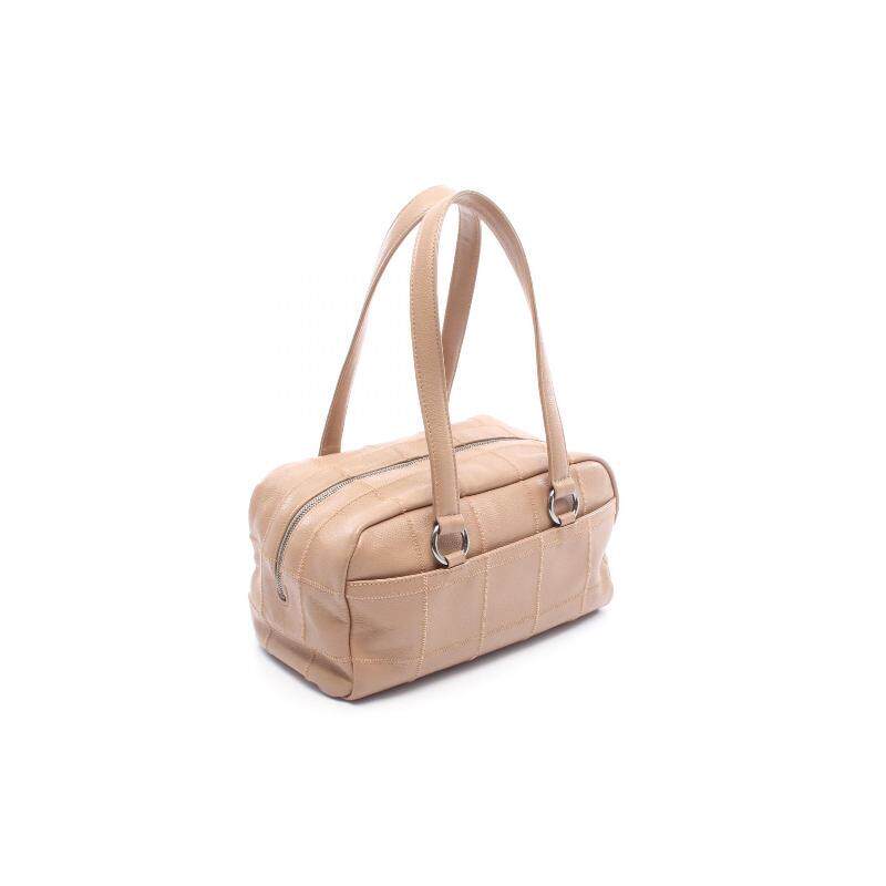 中古Chanel香奈儿女包B级9新Boston bag波士顿包牛皮手提包浅褐色