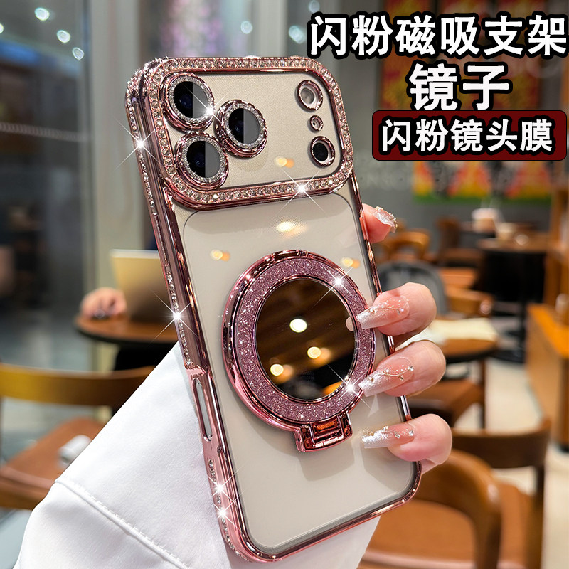轻奢水钻适用iPhone17手机壳2025新款 苹果16promax全包镜头15pro镜子磁吸支架14高级感女13透明防摔12保护套