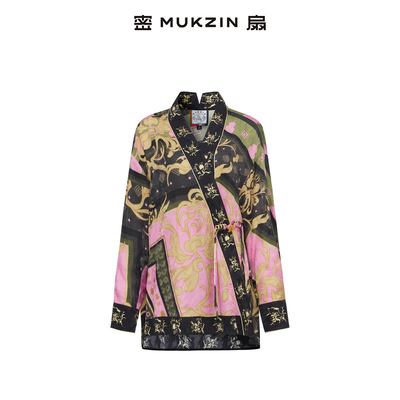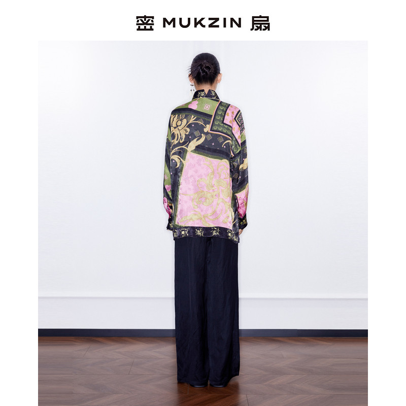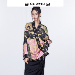 刘恋同款 复古宽松交领印花衬衫 2025春季 中式 新款 密扇