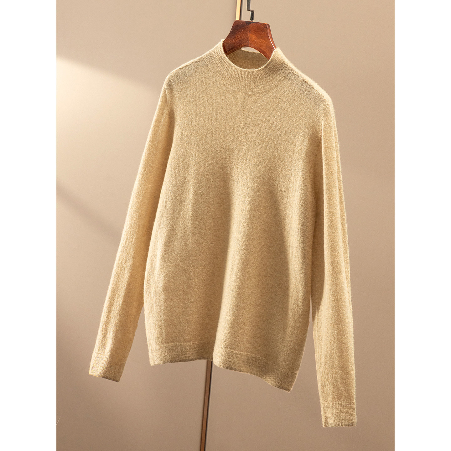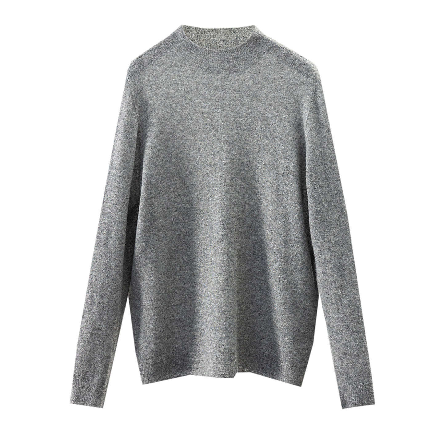 H春上7号 法柜无缝一体100山羊绒细闪银丝半高领毛衣D女43F2