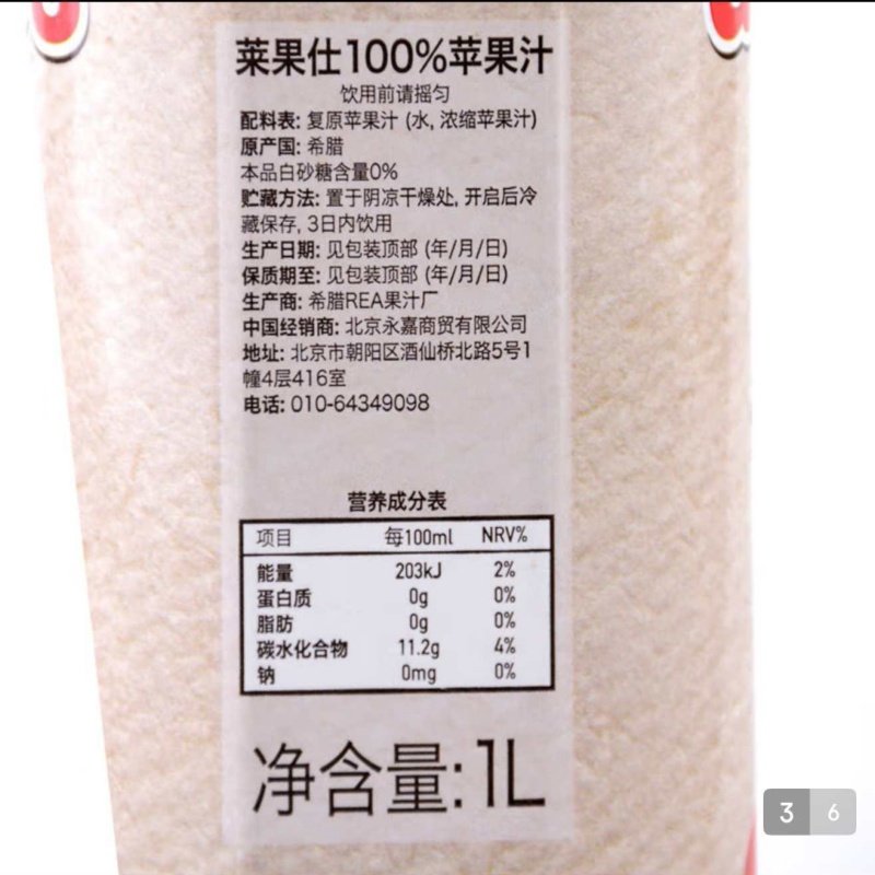 特惠2瓶临期莱果汁100%橙汁苹果汁1L家庭装 商用果汁饮 果咖橙C美式