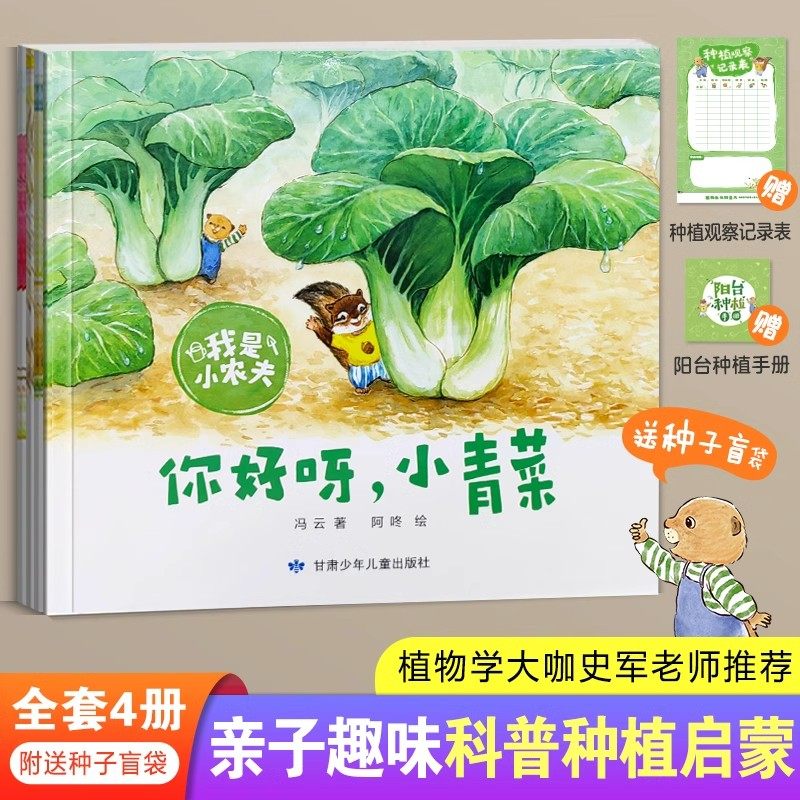 3–6岁幼儿园睡前故事宝宝阅读绘本 我是小农夫全4册科普种植图书 你好呀小青菜 豆子变魔术 秘密 小红萝卜 赠种子盲袋1包